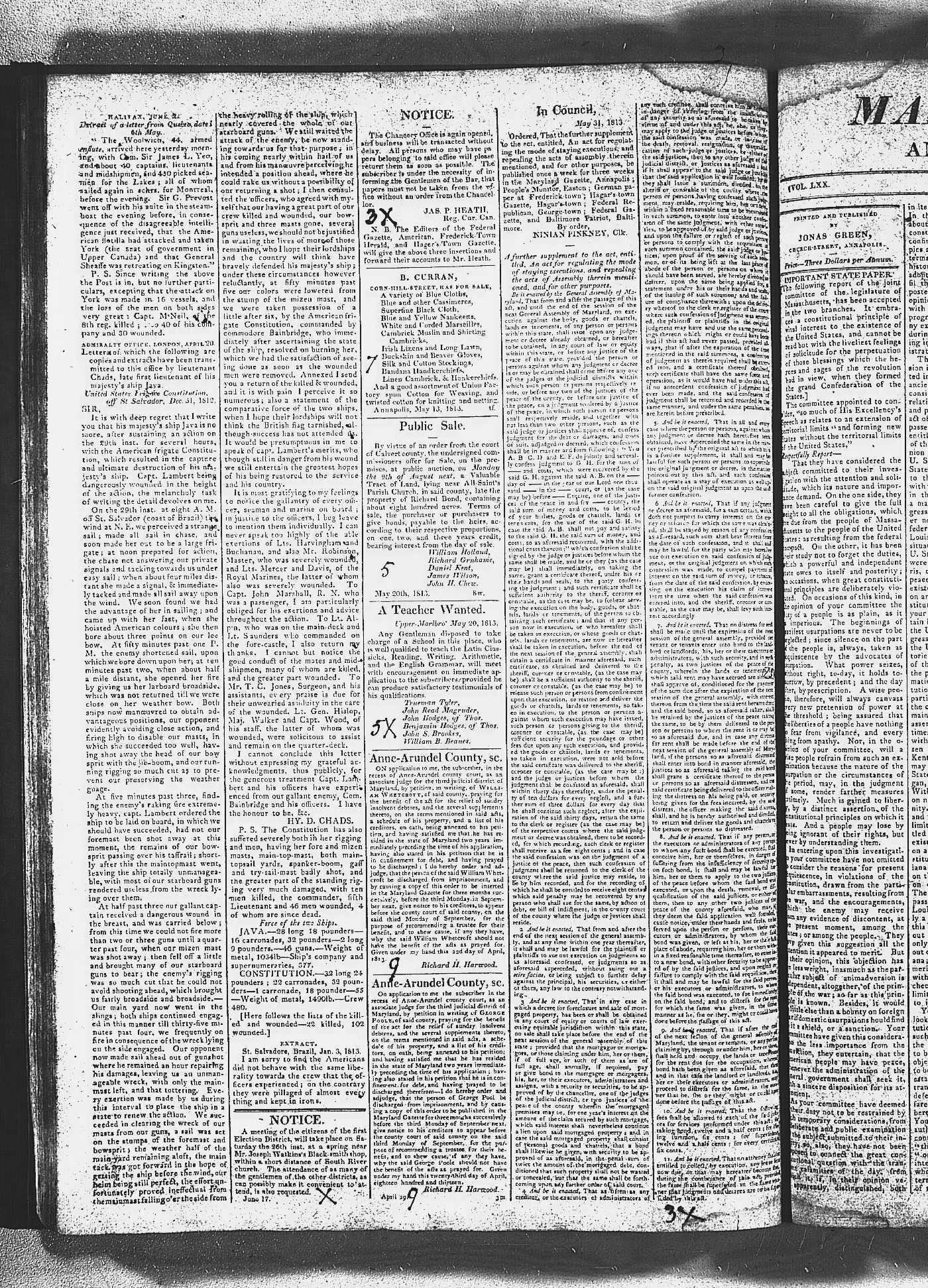 Maryland Gazette and Maryland Gazette and Political Intelligencer Collections MSA SC 2731 and SC 3403 January 2, 1811 - December 19, 1816 M 1287 A Publication of the Archives of Maryland Online Image No: 576