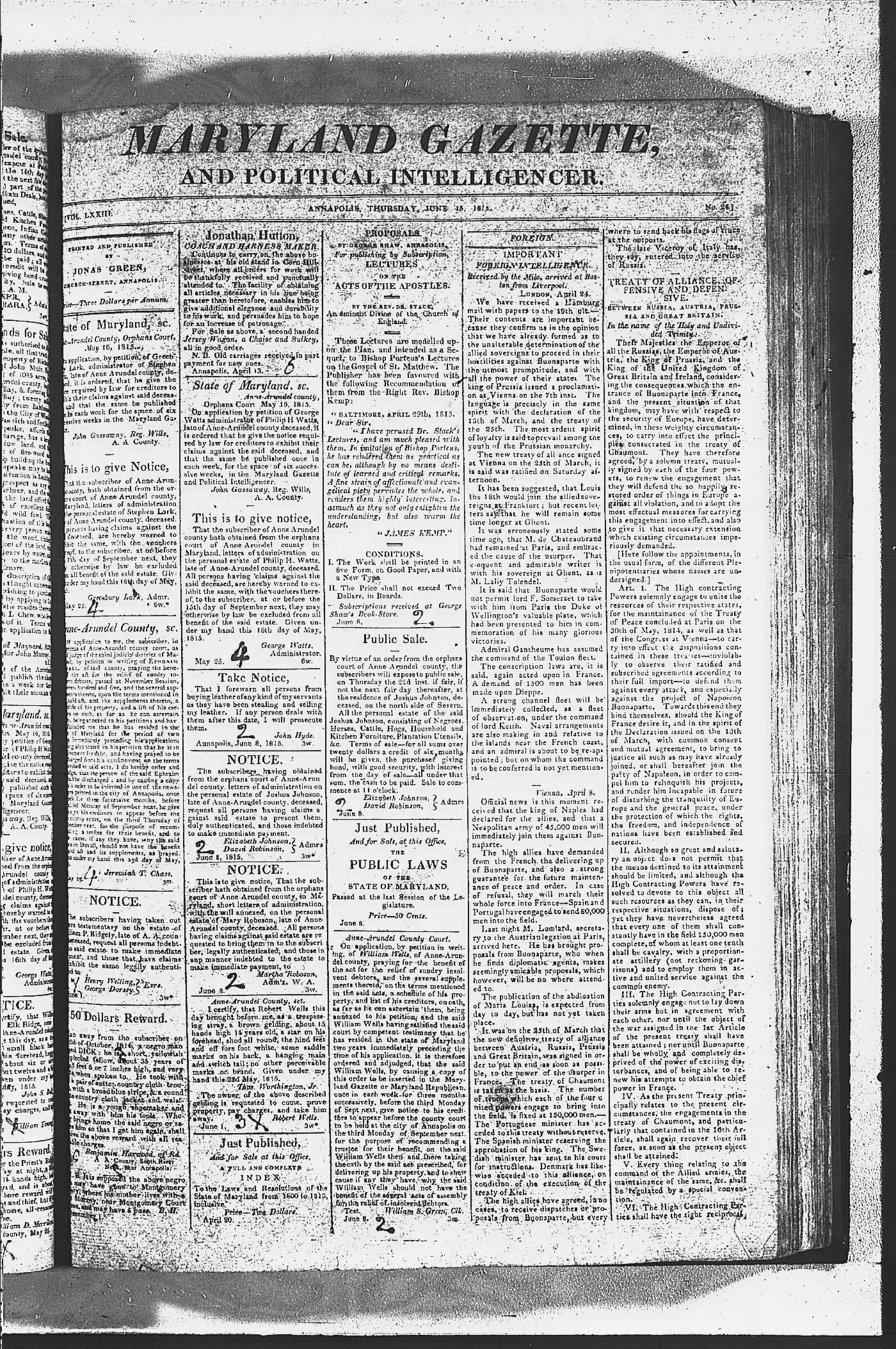 Maryland Gazette and Maryland Gazette and Political Intelligencer Collections MSA SC 2731 and SC 3403 January 2, 1811 - December 19, 1816 M 1287 A Publication of the Archives of Maryland Online Image No: 1053