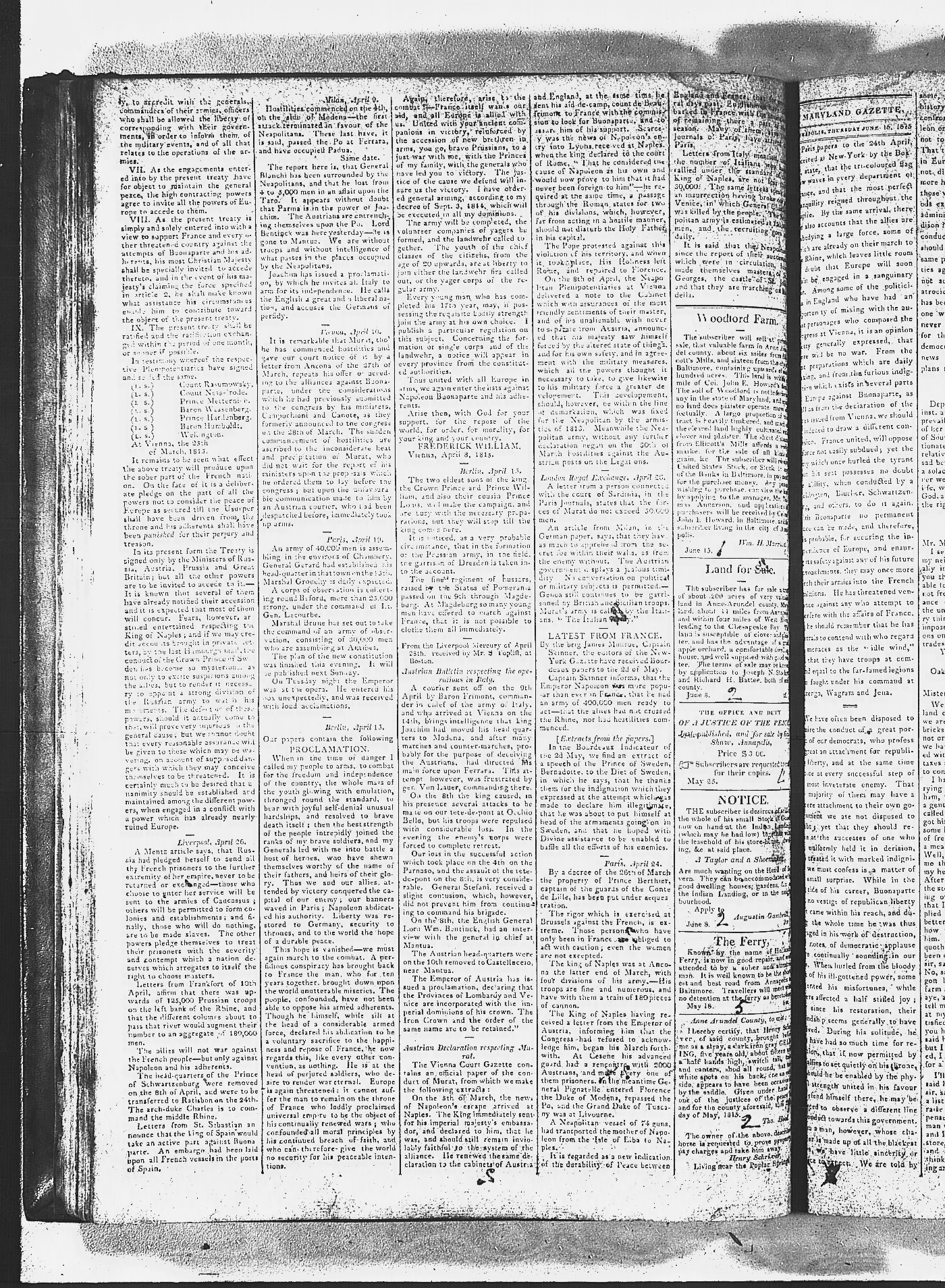 Maryland Gazette and Maryland Gazette and Political Intelligencer Collections MSA SC 2731 and SC 3403 January 2, 1811 - December 19, 1816 M 1287 A Publication of the Archives of Maryland Online Image No: 1054