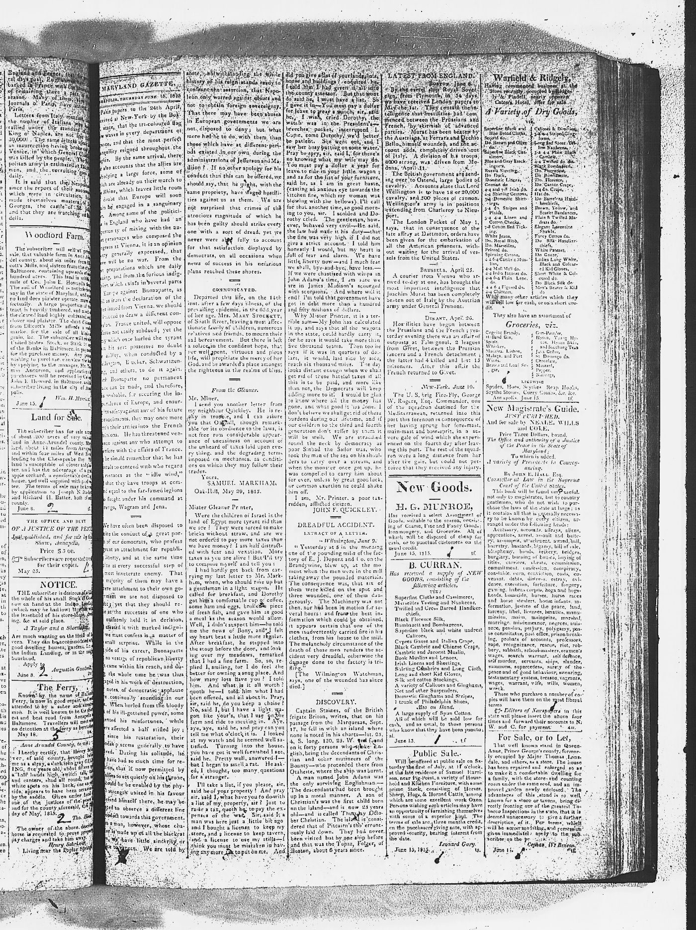 Maryland Gazette and Maryland Gazette and Political Intelligencer Collections MSA SC 2731 and SC 3403 January 2, 1811 - December 19, 1816 M 1287 A Publication of the Archives of Maryland Online Image No: 1055
