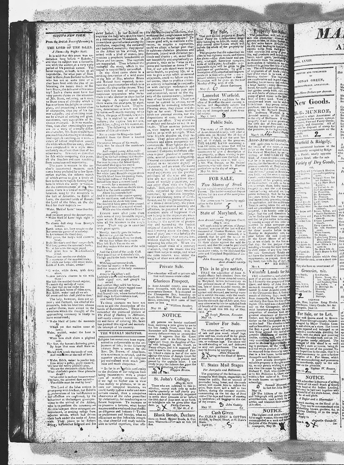 Maryland Gazette and Maryland Gazette and Political Intelligencer Collections MSA SC 2731 and SC 3403 January 2, 1811 - December 19, 1816 M 1287 A Publication of the Archives of Maryland Online Image No: 1056