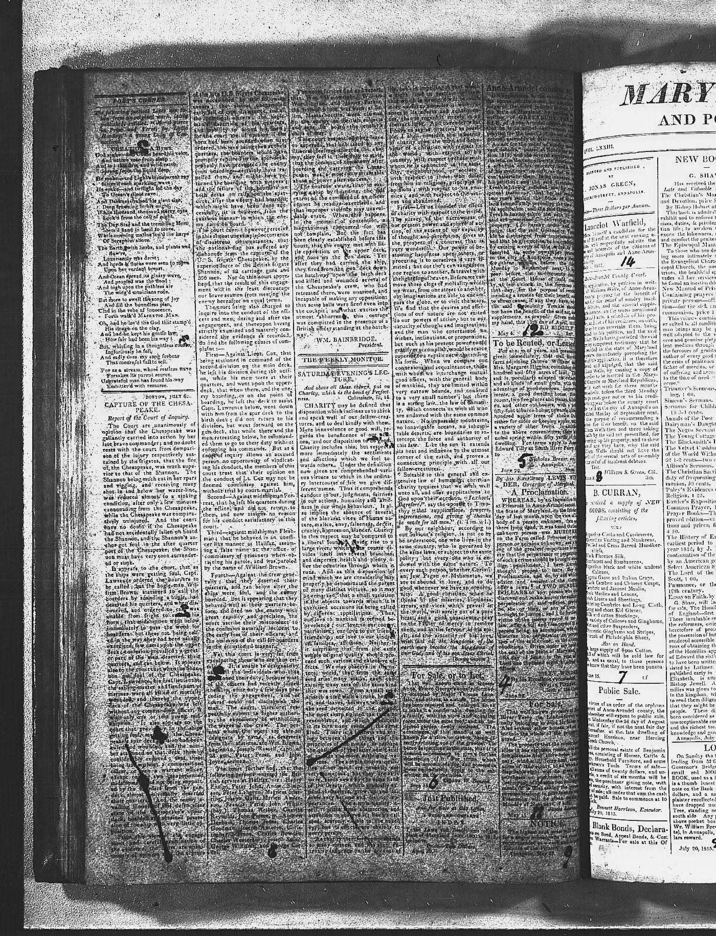 Maryland Gazette and Maryland Gazette and Political Intelligencer Collections MSA SC 2731 and SC 3403 January 2, 1811 - December 19, 1816 M 1287 A Publication of the Archives of Maryland Online Image No: 1078
