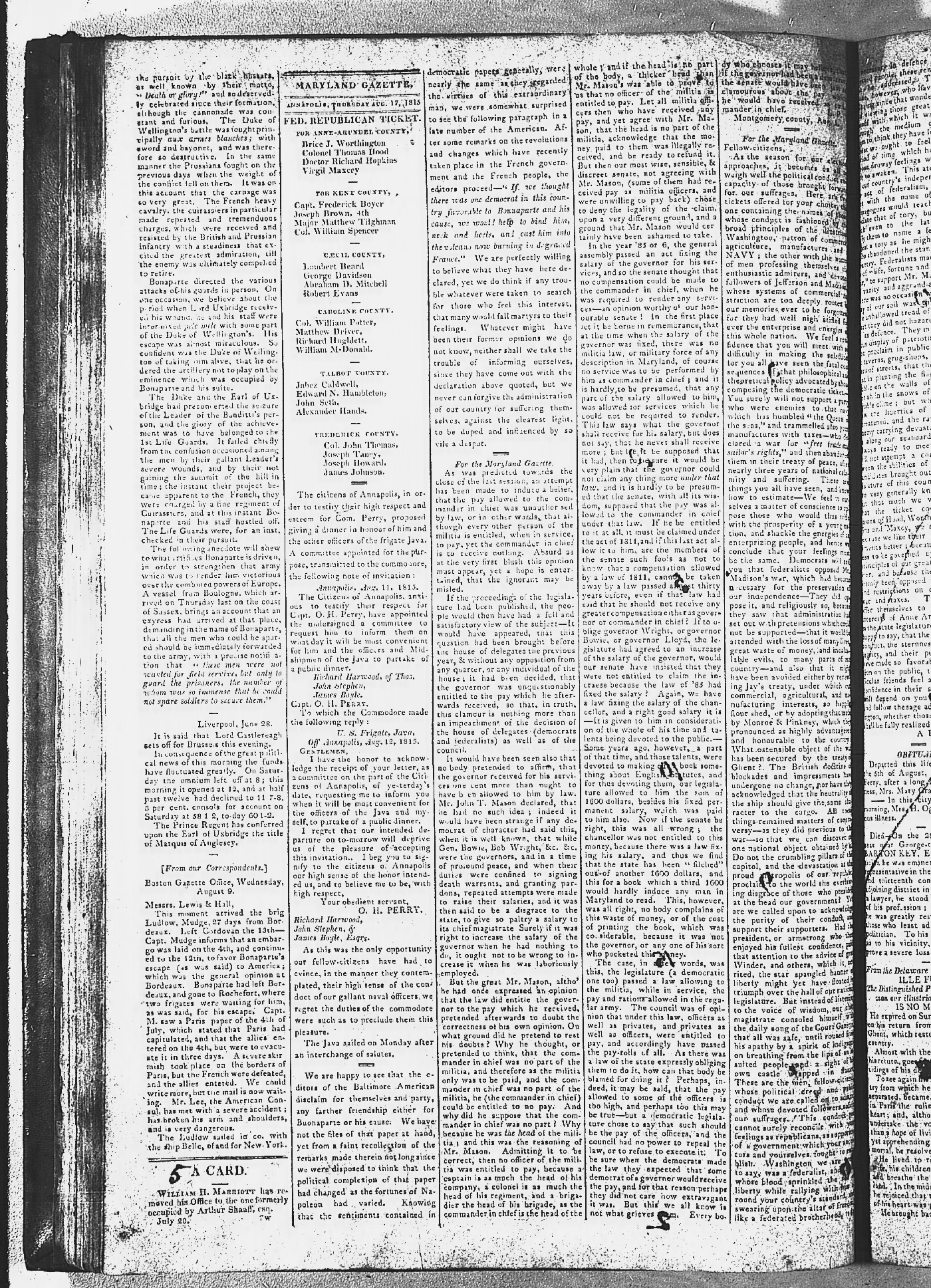 Maryland Gazette and Maryland Gazette and Political Intelligencer Collections MSA SC 2731 and SC 3403 January 2, 1811 - December 19, 1816 M 1287 A Publication of the Archives of Maryland Online Image No: 1093