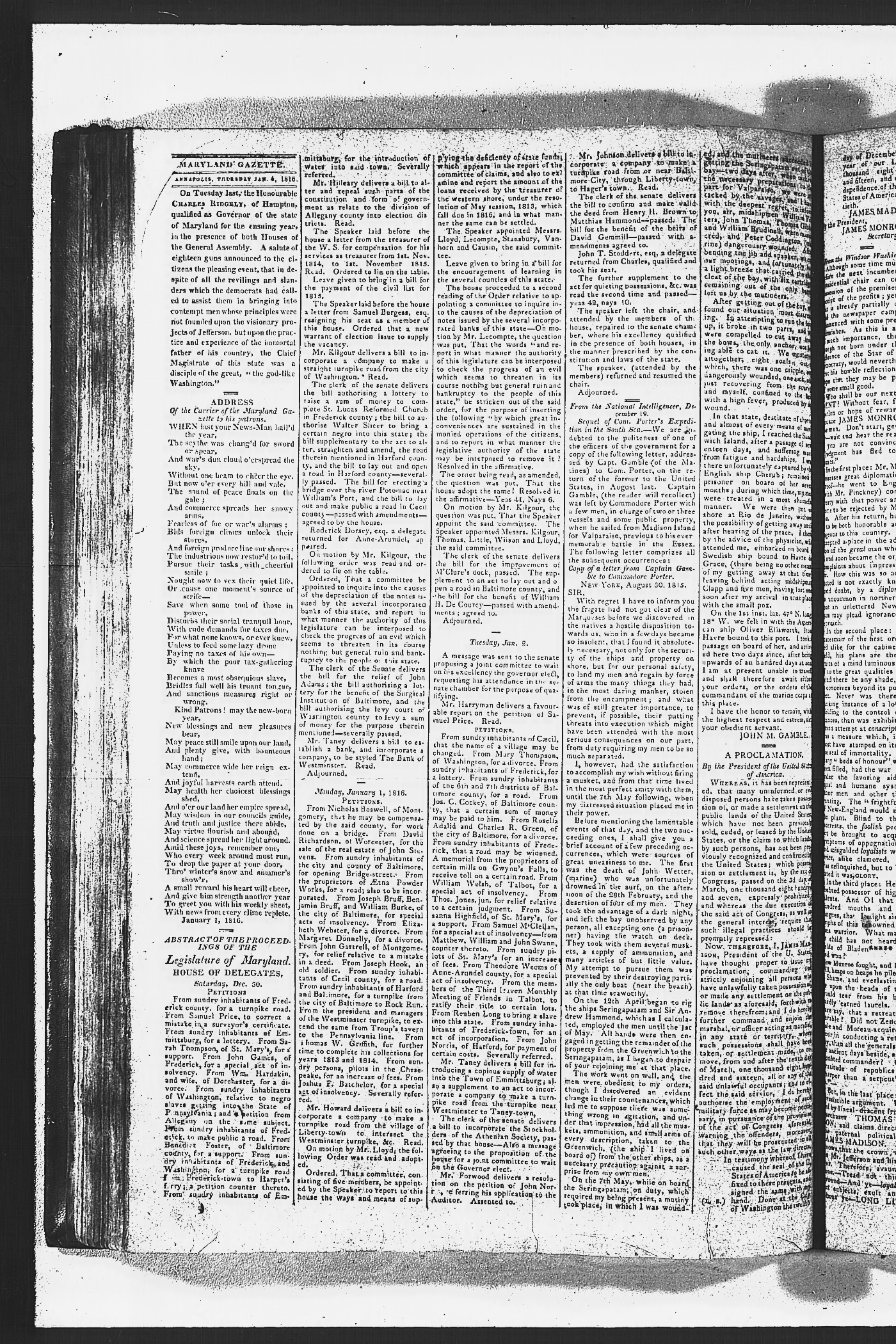 Maryland Gazette and Maryland Gazette and Political Intelligencer Collections MSA SC 2731 and SC 3403 January 2, 1811 - December 19, 1816 M 1287 A Publication of the Archives of Maryland Online Image No: 1197