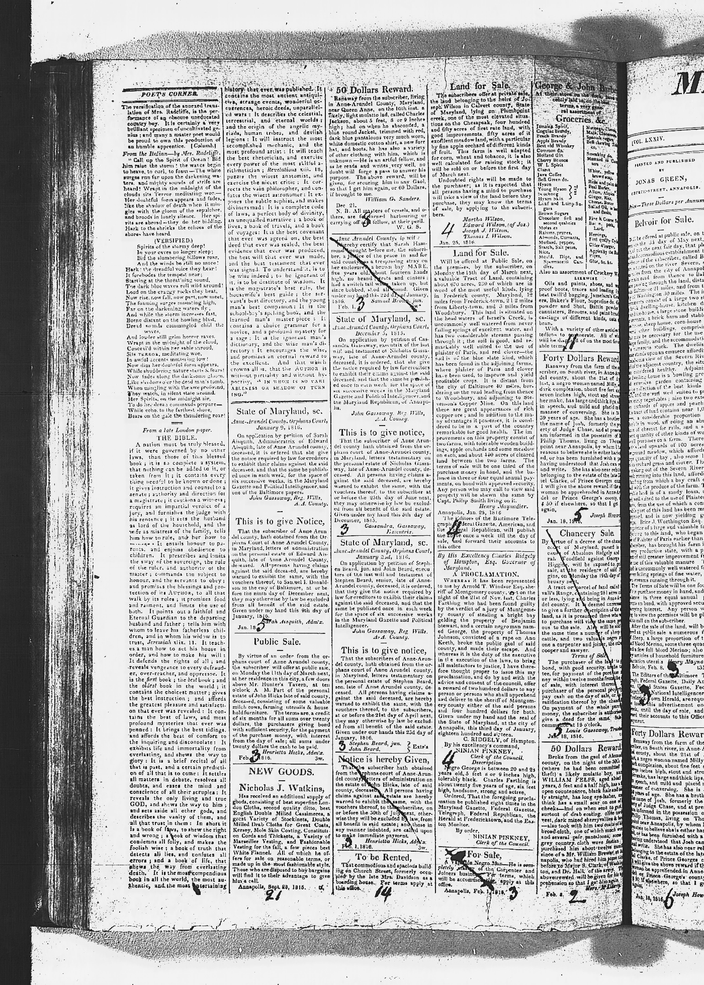 Maryland Gazette and Maryland Gazette and Political Intelligencer Collections MSA SC 2731 and SC 3403 January 2, 1811 - December 19, 1816 M 1287 A Publication of the Archives of Maryland Online Image No: 1227
