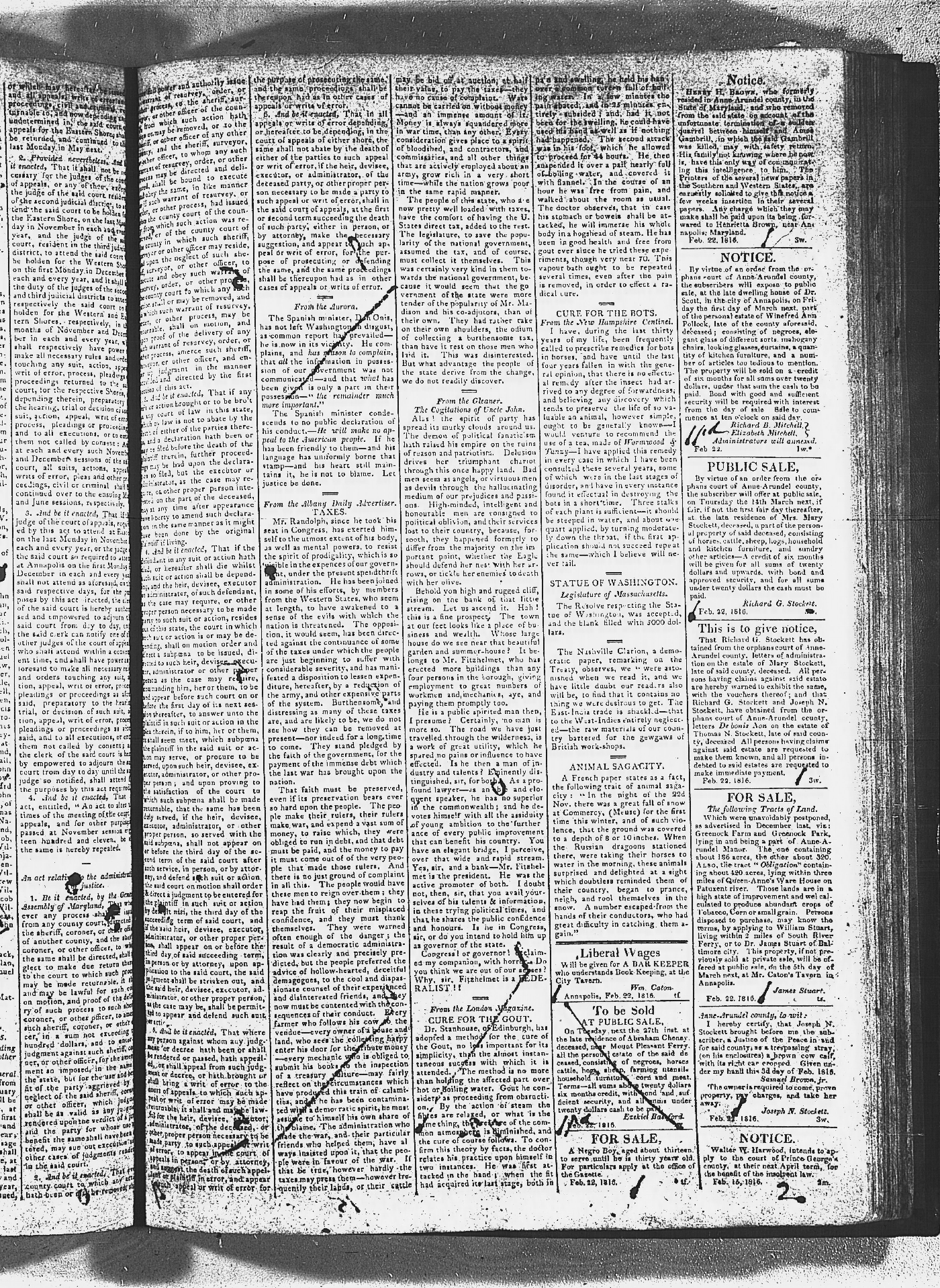 Maryland Gazette and Maryland Gazette and Political Intelligencer Collections MSA SC 2731 and SC 3403 January 2, 1811 - December 19, 1816 M 1287 A Publication of the Archives of Maryland Online Image No: 1232
