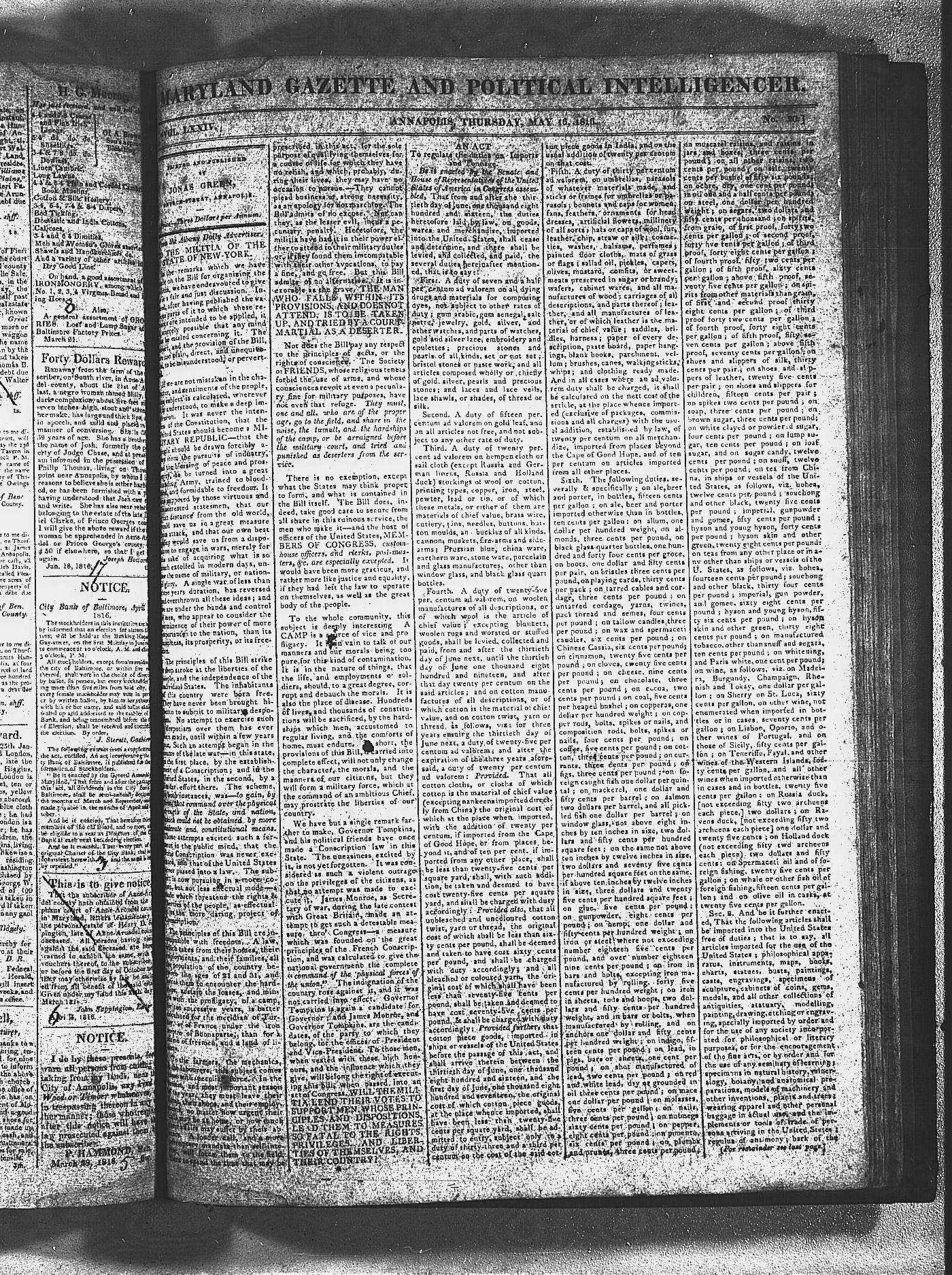 Maryland Gazette and Maryland Gazette and Political Intelligencer Collections MSA SC 2731 and SC 3403 January 2, 1811 - December 19, 1816 M 1287 A Publication of the Archives of Maryland Online Image No: 1278