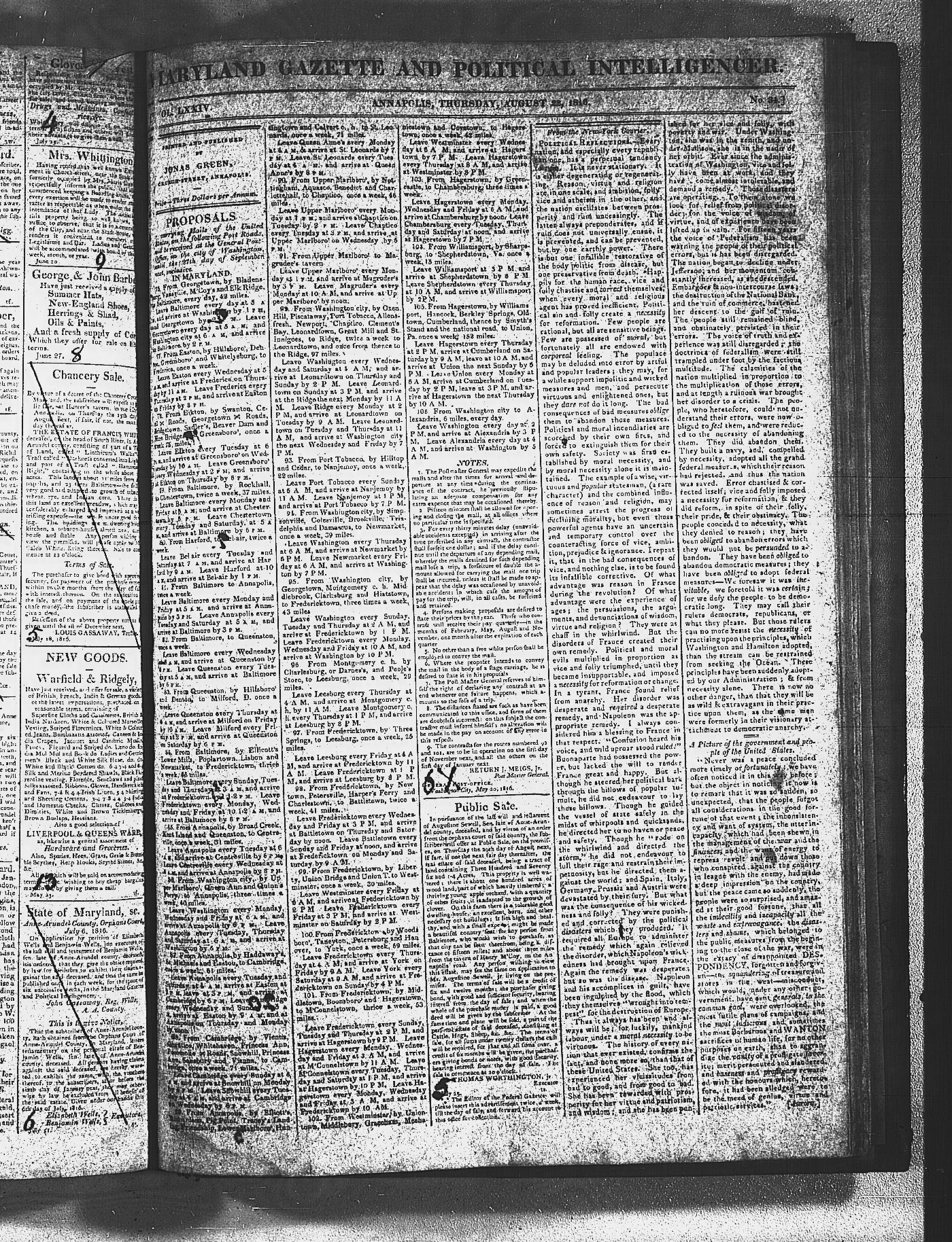 Maryland Gazette and Maryland Gazette and Political Intelligencer Collections MSA SC 2731 and SC 3403 January 2, 1811 - December 19, 1816 M 1287 A Publication of the Archives of Maryland Online Image No: 1338