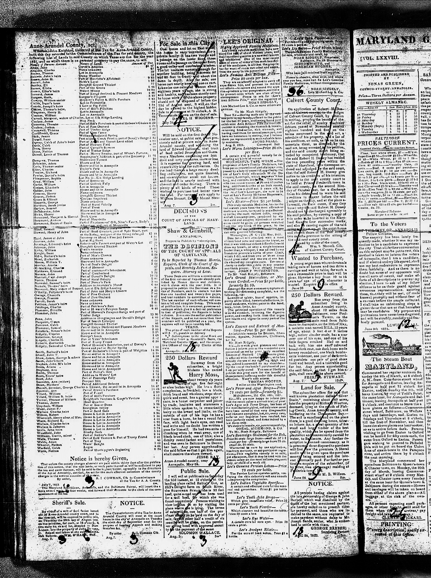 Maryland Gazette and Political Intelligencer and Maryland Gazette and State Register Collections, MSA SC 3403 and SC 3428 January 2, 1823 - December 25, 1828 M 1289 A Publication of the Archives of Maryland Online Image No: 147