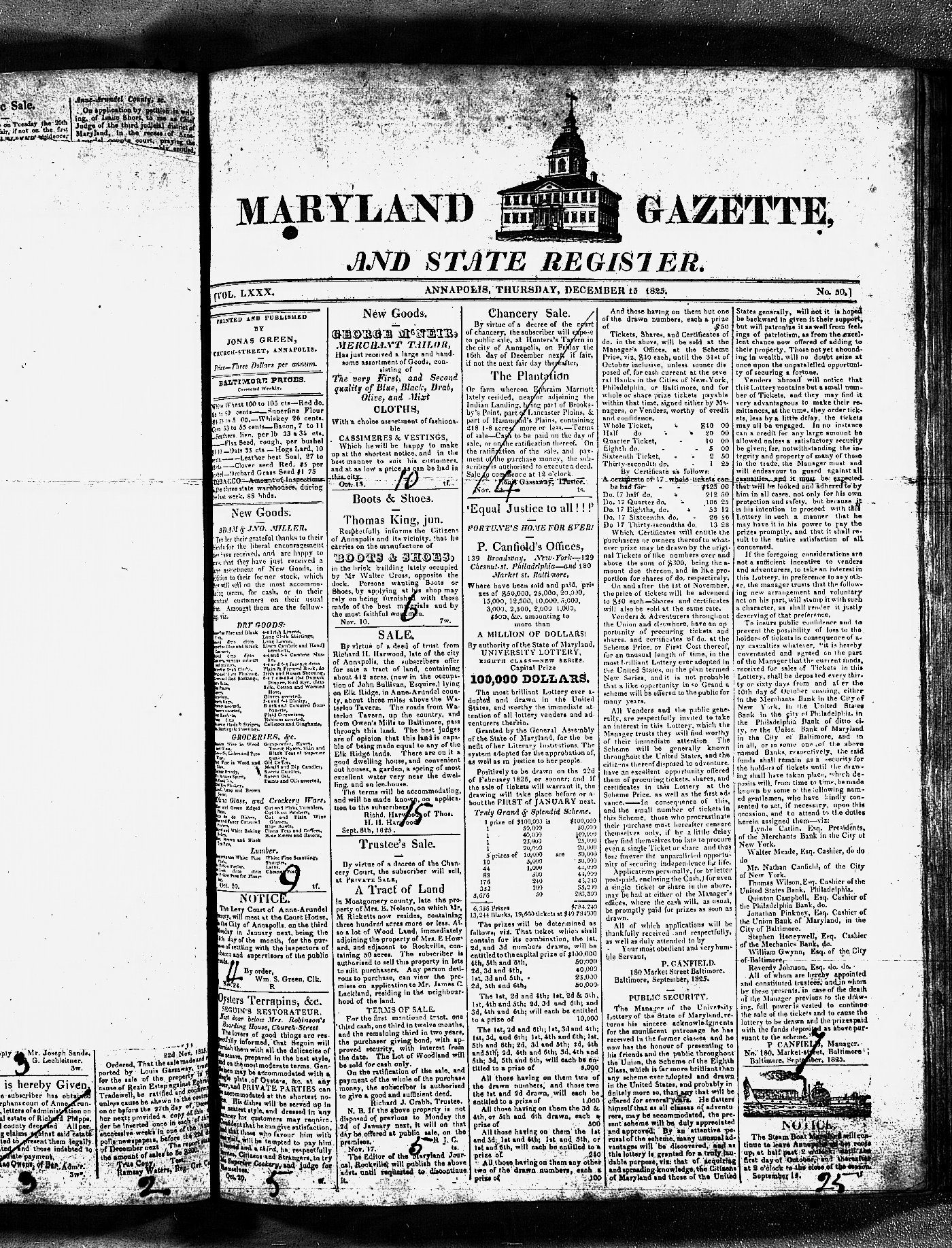 Maryland Gazette and Political Intelligencer and Maryland Gazette and State Register Collections, MSA SC 3403 and SC 3428 January 2, 1823 - December 25, 1828 M 1289 A Publication of the Archives of Maryland Online Image No: 644