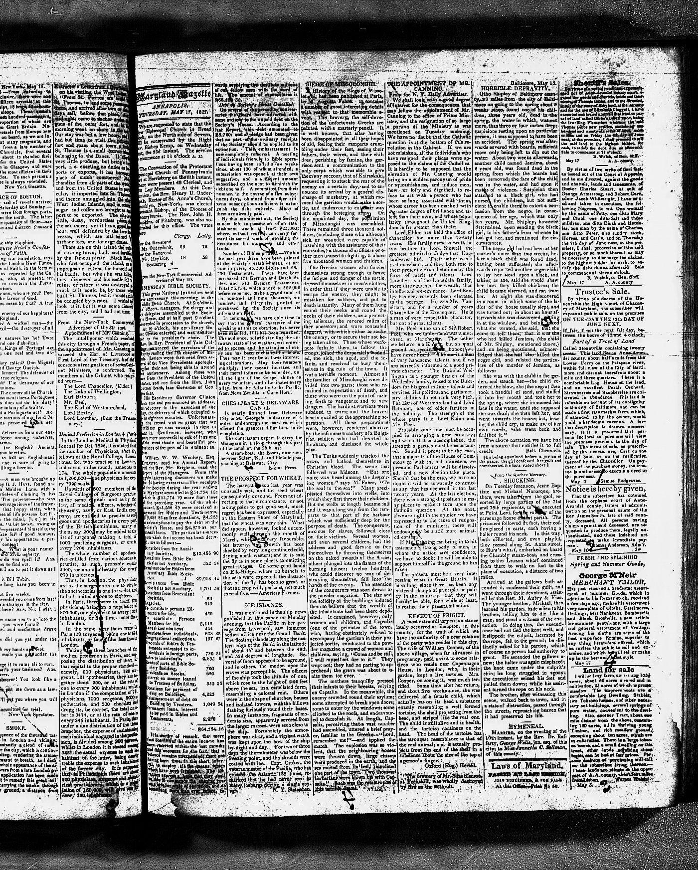 Maryland Gazette and Political Intelligencer and Maryland Gazette and State Register Collections, MSA SC 3403 and SC 3428 January 2, 1823 - December 25, 1828 M 1289 A Publication of the Archives of Maryland Online Image No: 980