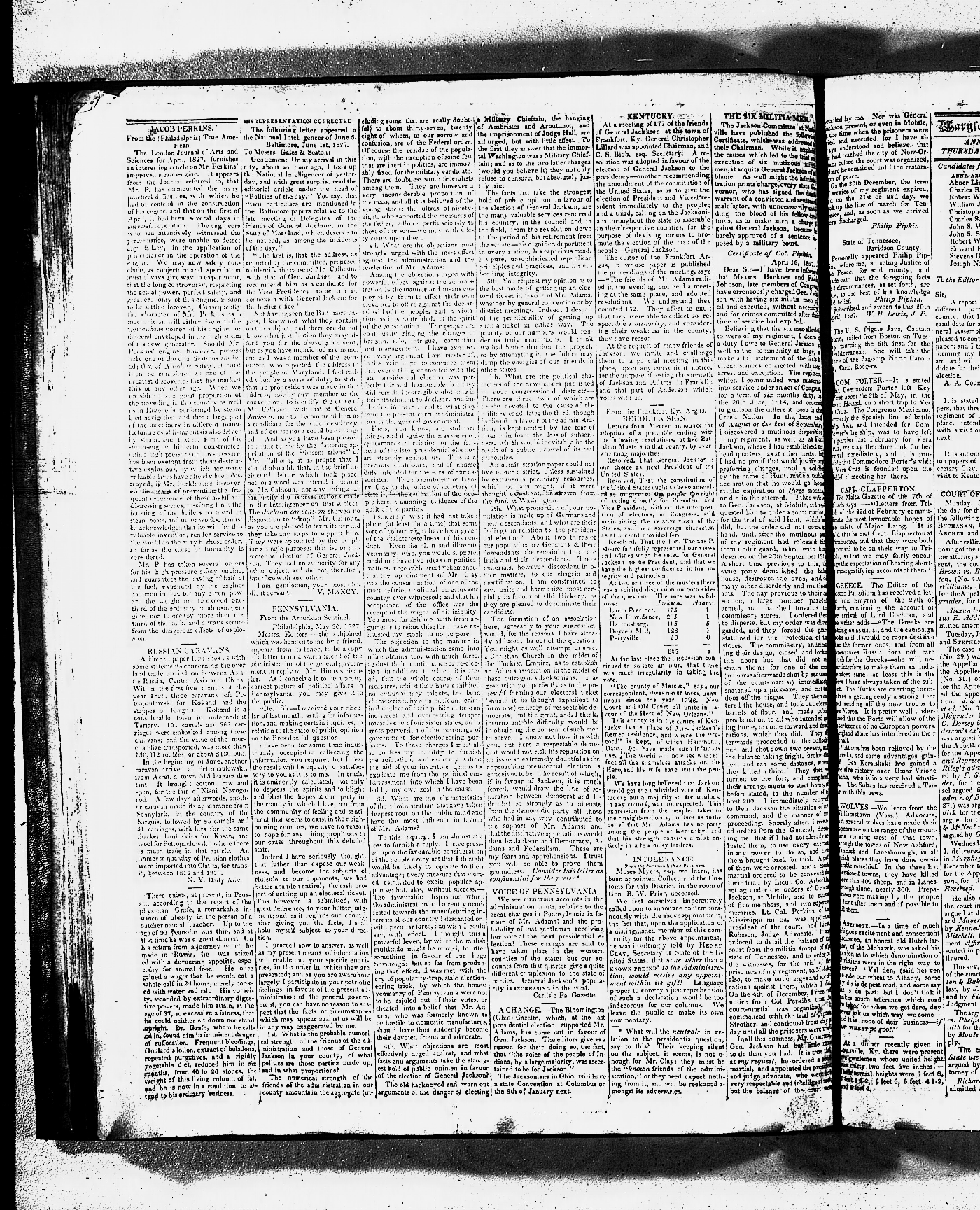 Maryland Gazette and Political Intelligencer and Maryland Gazette and State Register Collections, MSA SC 3403 and SC 3428 January 2, 1823 - December 25, 1828 M 1289 A Publication of the Archives of Maryland Online Image No: 1001