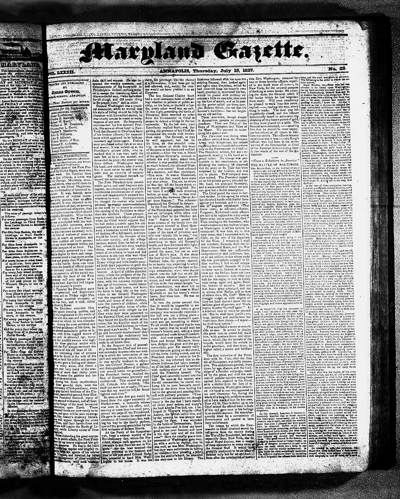Maryland Gazette and Political Intelligencer and Maryland Gazette and State Register Collections, MSA SC 3403 and SC 3428 January 2, 1823 - December 25, 1828 M 1289 A Publication of the Archives of Maryland Online Image No: 1026