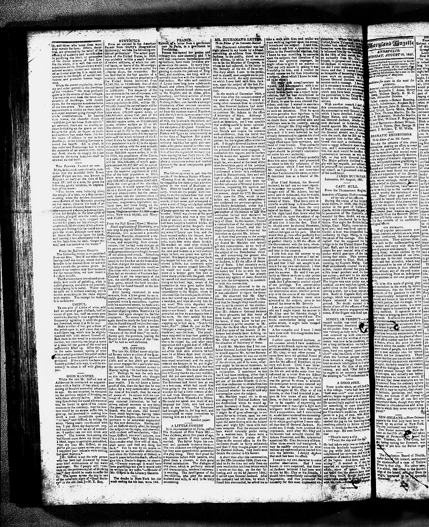 Maryland Gazette and Political Intelligencer and Maryland Gazette and State Register Collections, MSA SC 3403 and SC 3428 January 2, 1823 - December 25, 1828 M 1289 A Publication of the Archives of Maryland Online Image No: 1043