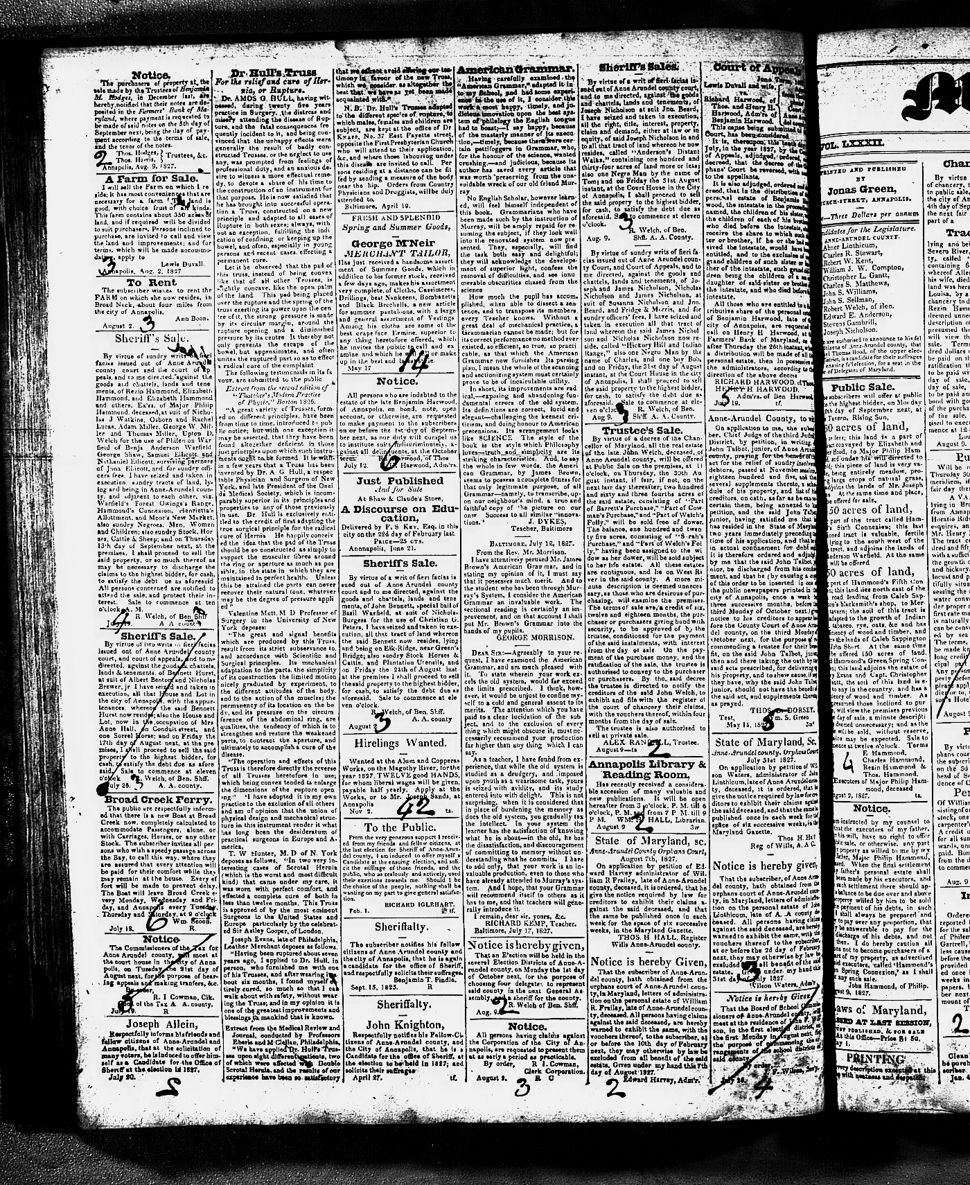Maryland Gazette and Political Intelligencer and Maryland Gazette and State Register Collections, MSA SC 3403 and SC 3428 January 2, 1823 - December 25, 1828 M 1289 A Publication of the Archives of Maryland Online Image No: 1049