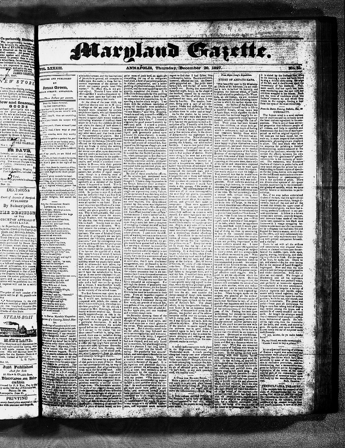 Maryland Gazette and Political Intelligencer and Maryland Gazette and State Register Collections, MSA SC 3403 and SC 3428 January 2, 1823 - December 25, 1828 M 1289 A Publication of the Archives of Maryland Online Image No: 1124