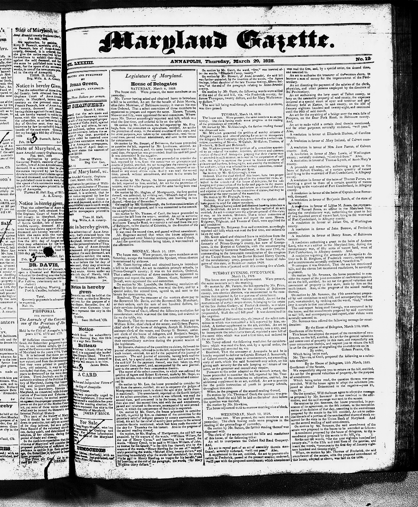 Maryland Gazette and Political Intelligencer and Maryland Gazette and State Register Collections, MSA SC 3403 and SC 3428 January 2, 1823 - December 25, 1828 M 1289 A Publication of the Archives of Maryland Online Image No: 1187
