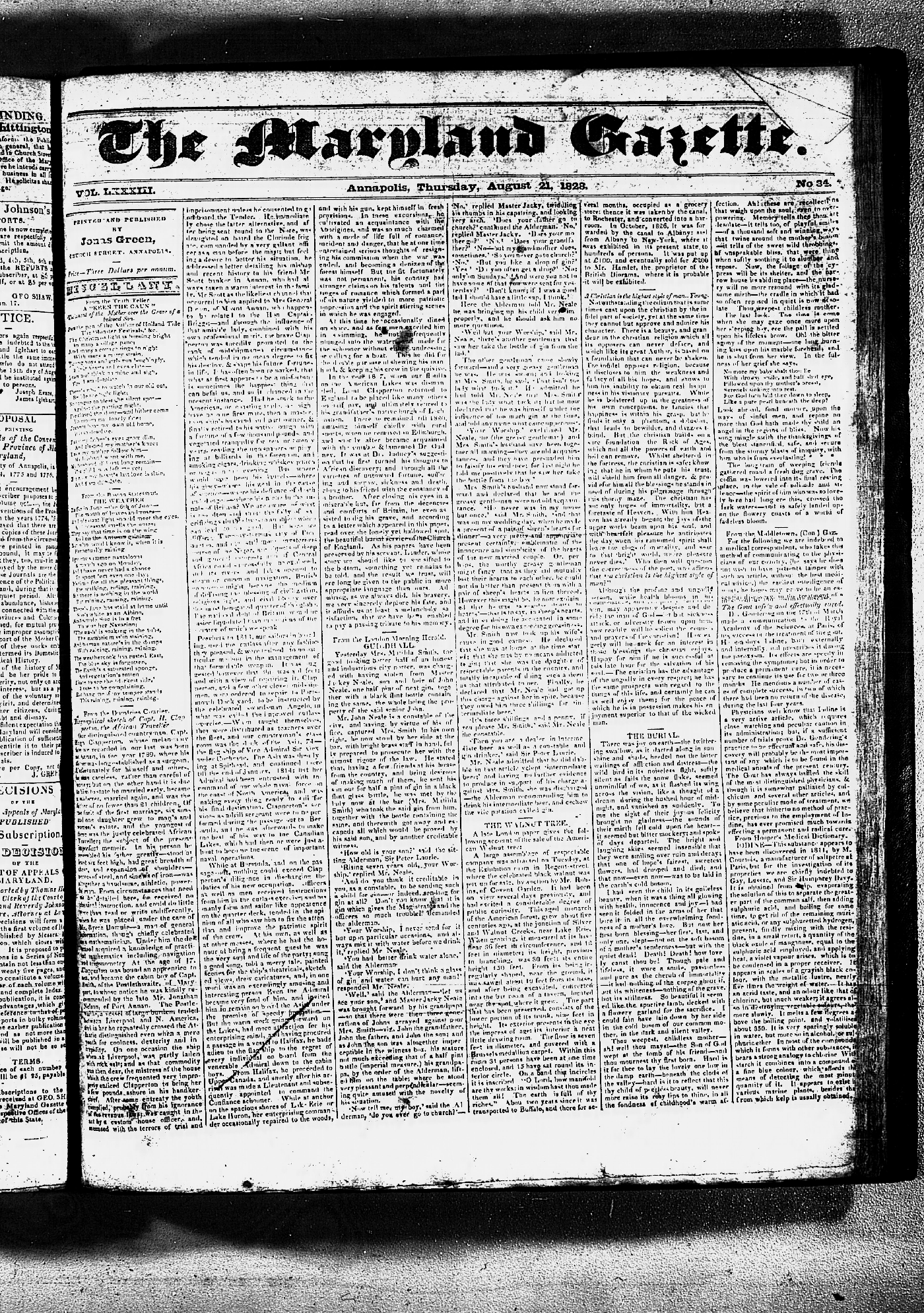 Maryland Gazette and Political Intelligencer and Maryland Gazette and State Register Collections, MSA SC 3403 and SC 3428 January 2, 1823 - December 25, 1828 M 1289 A Publication of the Archives of Maryland Online Image No: 1279