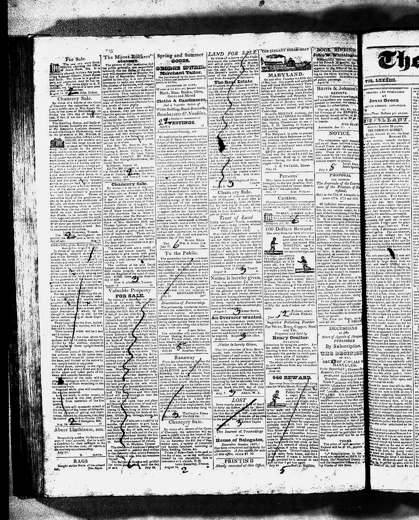 Maryland Gazette and Political Intelligencer and Maryland Gazette and State Register Collections, MSA SC 3403 and SC 3428 January 2, 1823 - December 25, 1828 M 1289 A Publication of the Archives of Maryland Online Image No: 1282