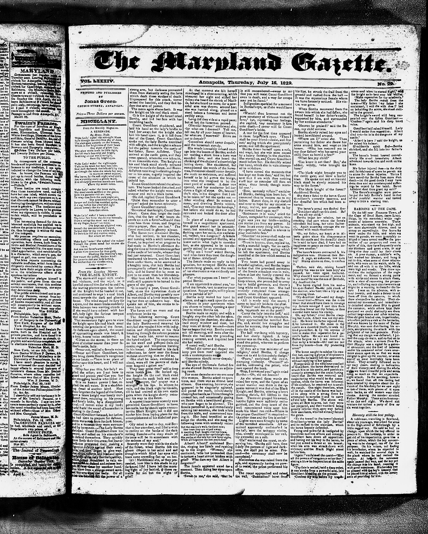 Maryland Gazette Collection MSA SC 3447 January 1, 1829 - December 31, 1835 M 1290 A Publication of the Archives of Maryland Online Image No: 123 Enlarge and print image (6M) |