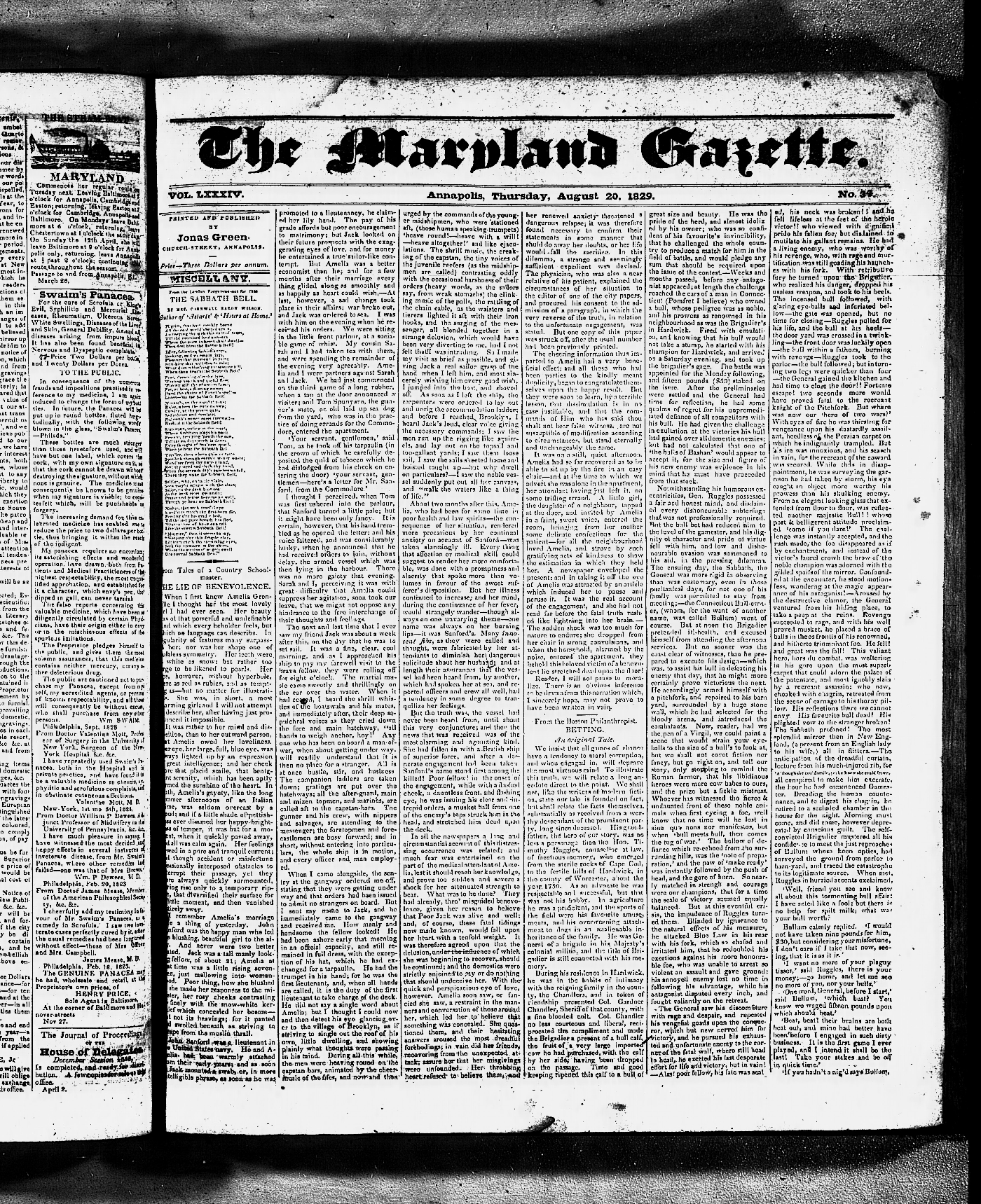 Maryland Gazette Collection MSA SC 3447 January 1, 1829 - December 31, 1835 M 1290 A Publication of the Archives of Maryland Online Image No: 143 Enlarge and print image (6M) |