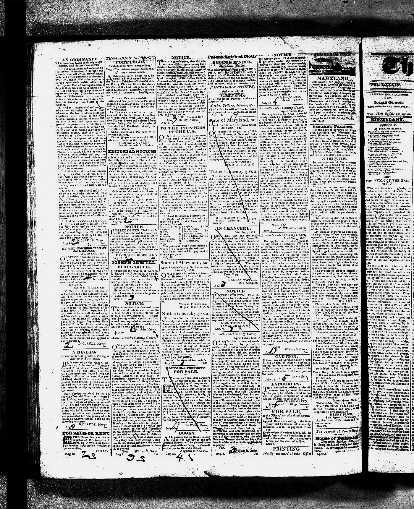 Maryland Gazette Collection MSA SC 3447 January 1, 1829 - December 31, 1835 M 1290 A Publication of the Archives of Maryland Online Image No: 148 Enlarge and print image (6M) |