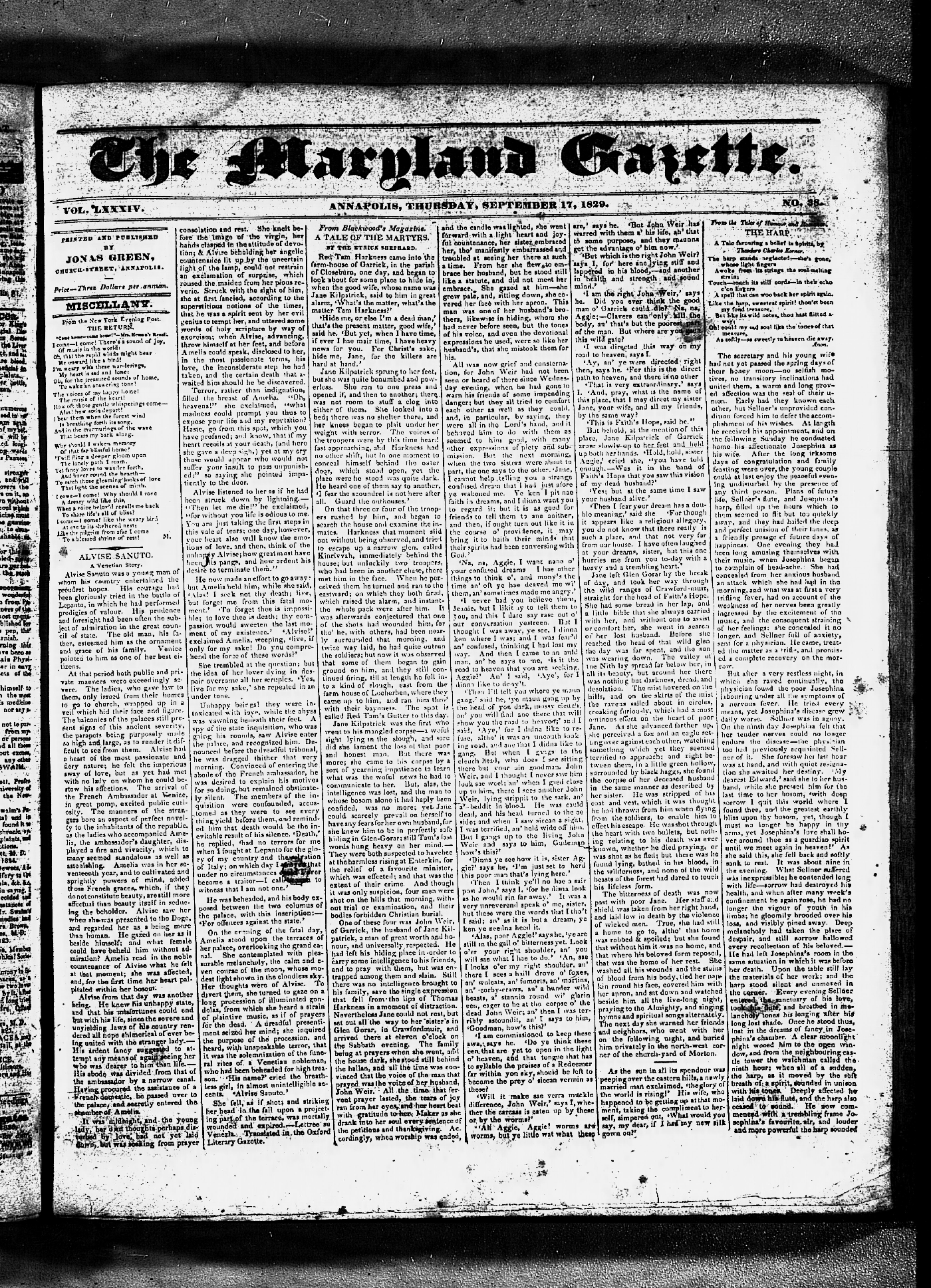 Maryland Gazette Collection MSA SC 3447 January 1, 1829 - December 31, 1835 M 1290 A Publication of the Archives of Maryland Online Image No: 163 Enlarge and print image (5M) |