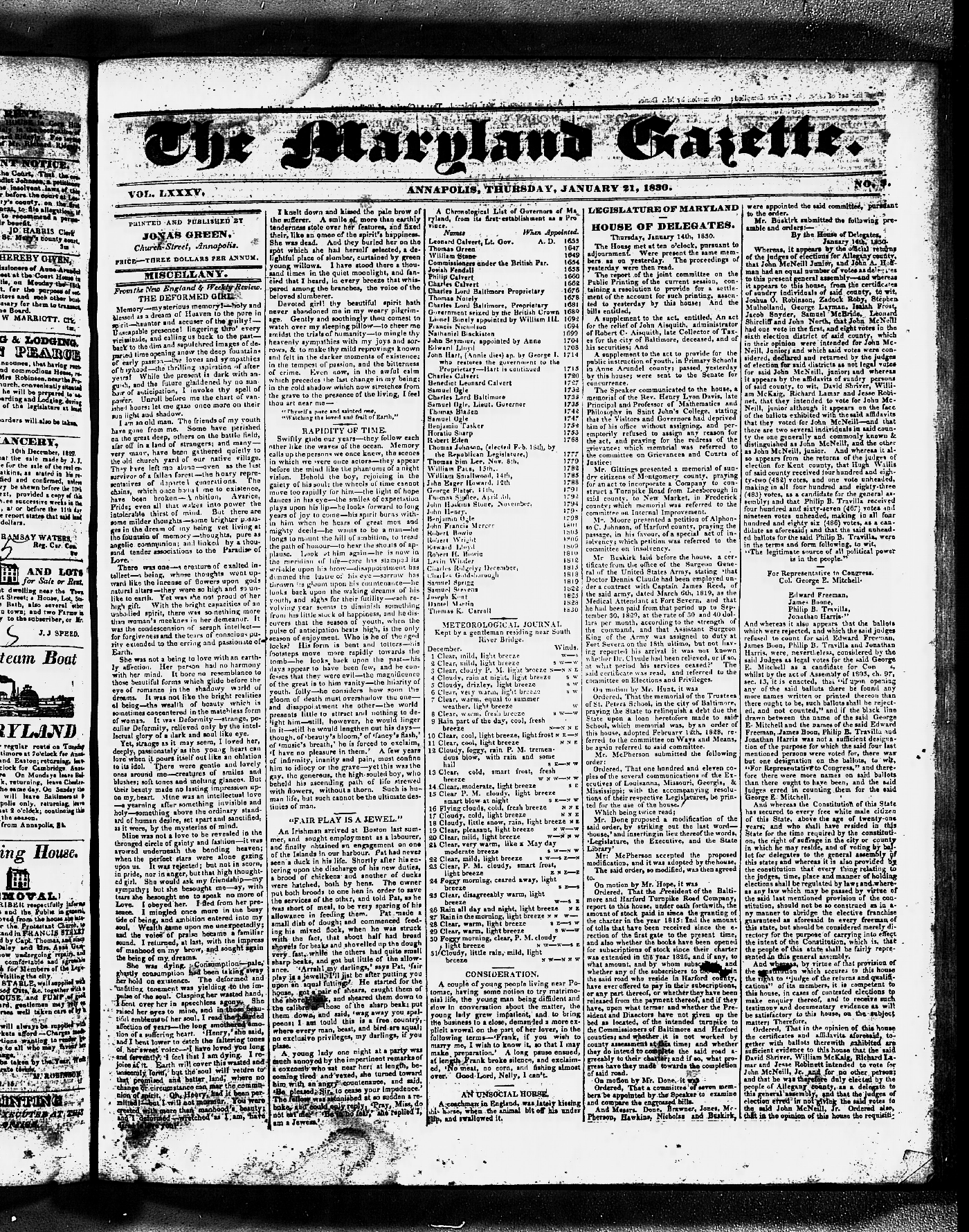 Maryland Gazette Collection MSA SC 3447 January 1, 1829 - December 31, 1835 M 1290 A Publication of the Archives of Maryland Online Image No: 243 Enlarge and print image (5M) |