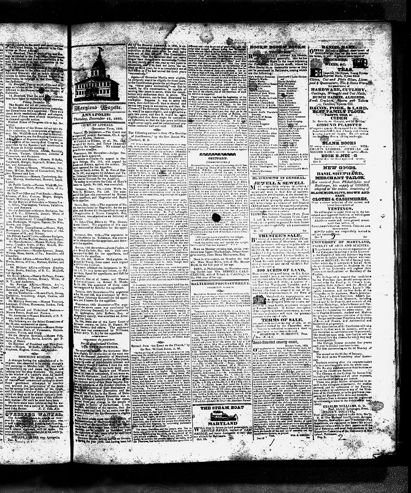 Maryland Gazette Collection MSA SC 3447 January 1, 1829 - December 31, 1835 M 1290 A Publication of the Archives of Maryland Online Image No: 443 Enlarge and print image (6M) |