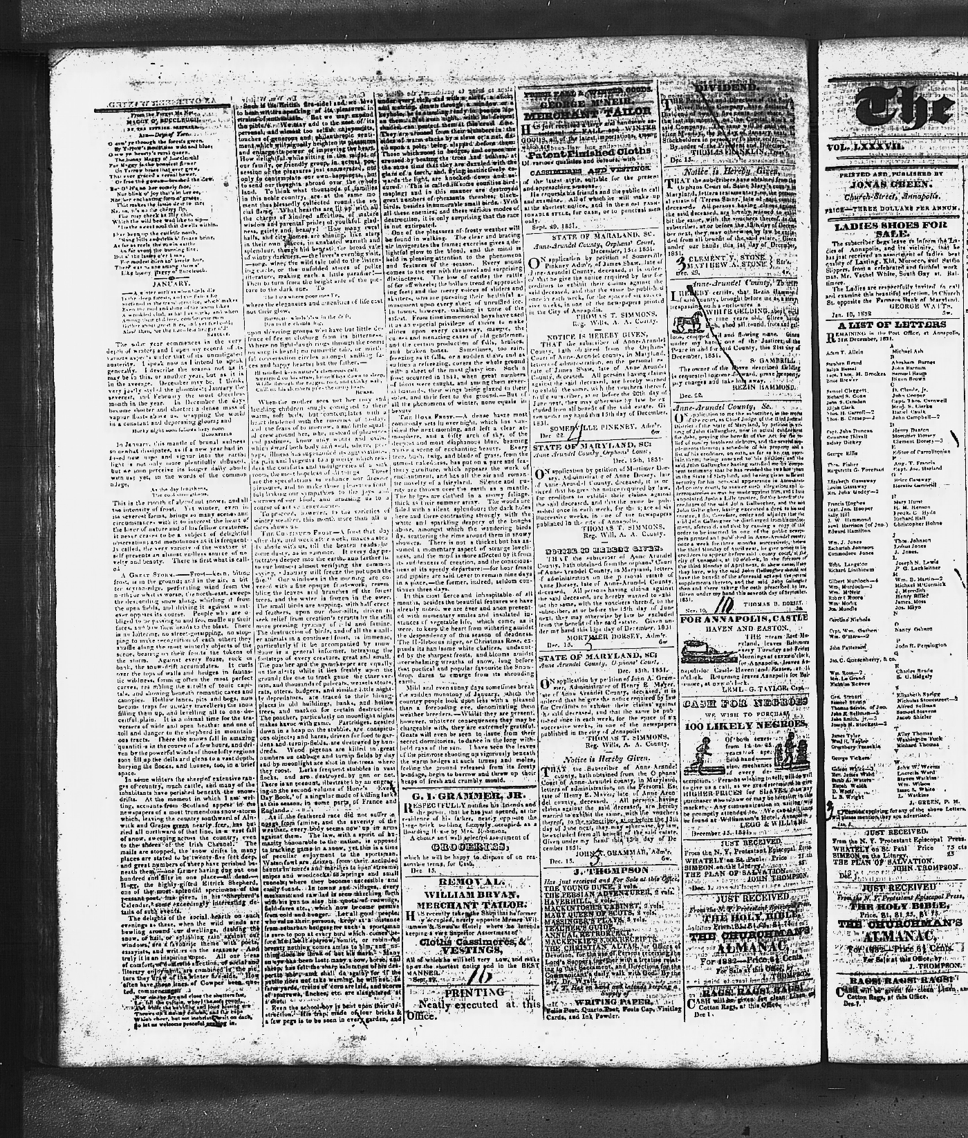 Maryland Gazette Collection MSA SC 3447 January 1, 1829 - December 31, 1835 M 1290 A Publication of the Archives of Maryland Online Image No: 704 Enlarge and print image (5M) |
