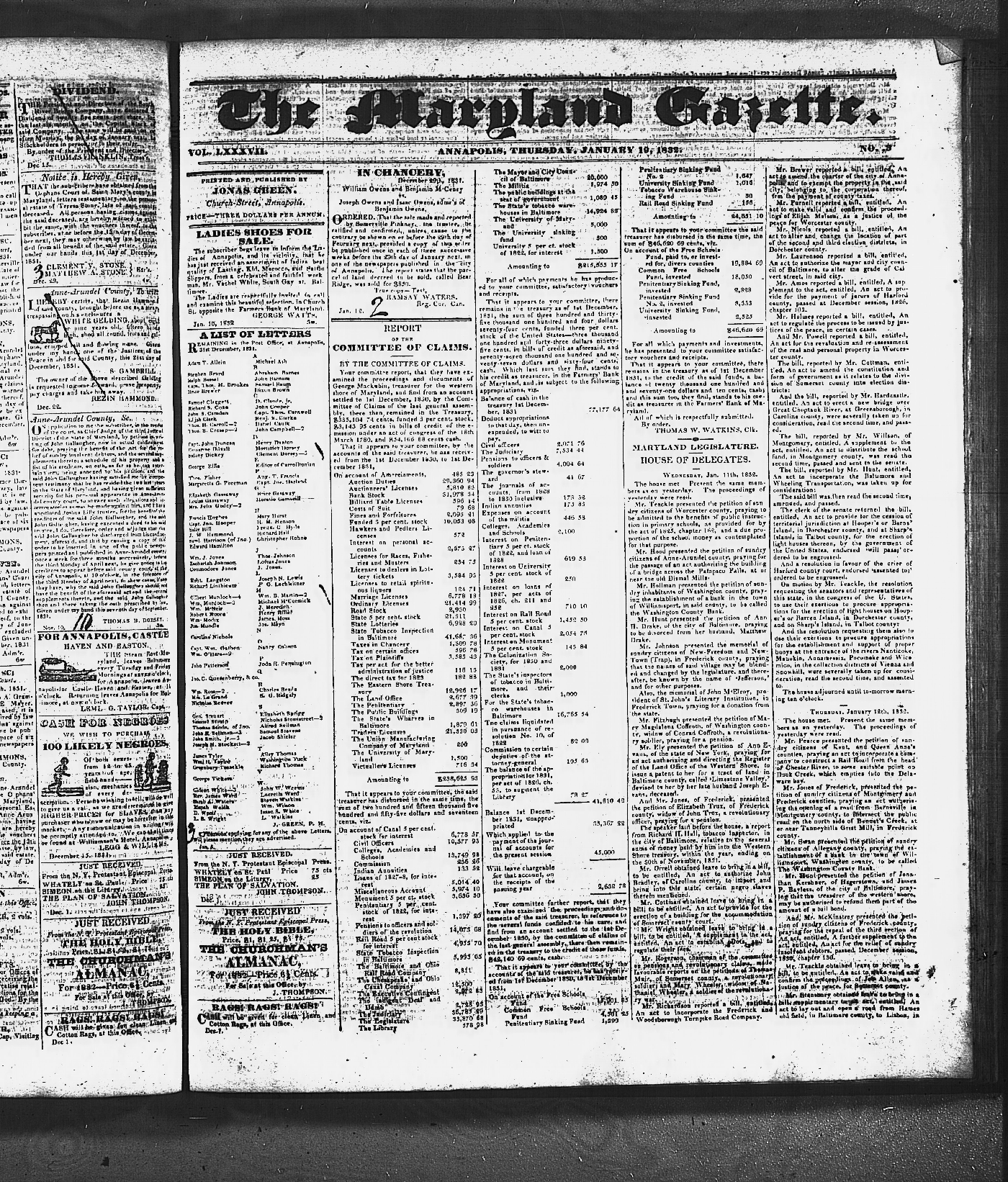 Maryland Gazette Collection MSA SC 3447 January 1, 1829 - December 31, 1835 M 1290 A Publication of the Archives of Maryland Online Image No: 705 Enlarge and print image (5M) |