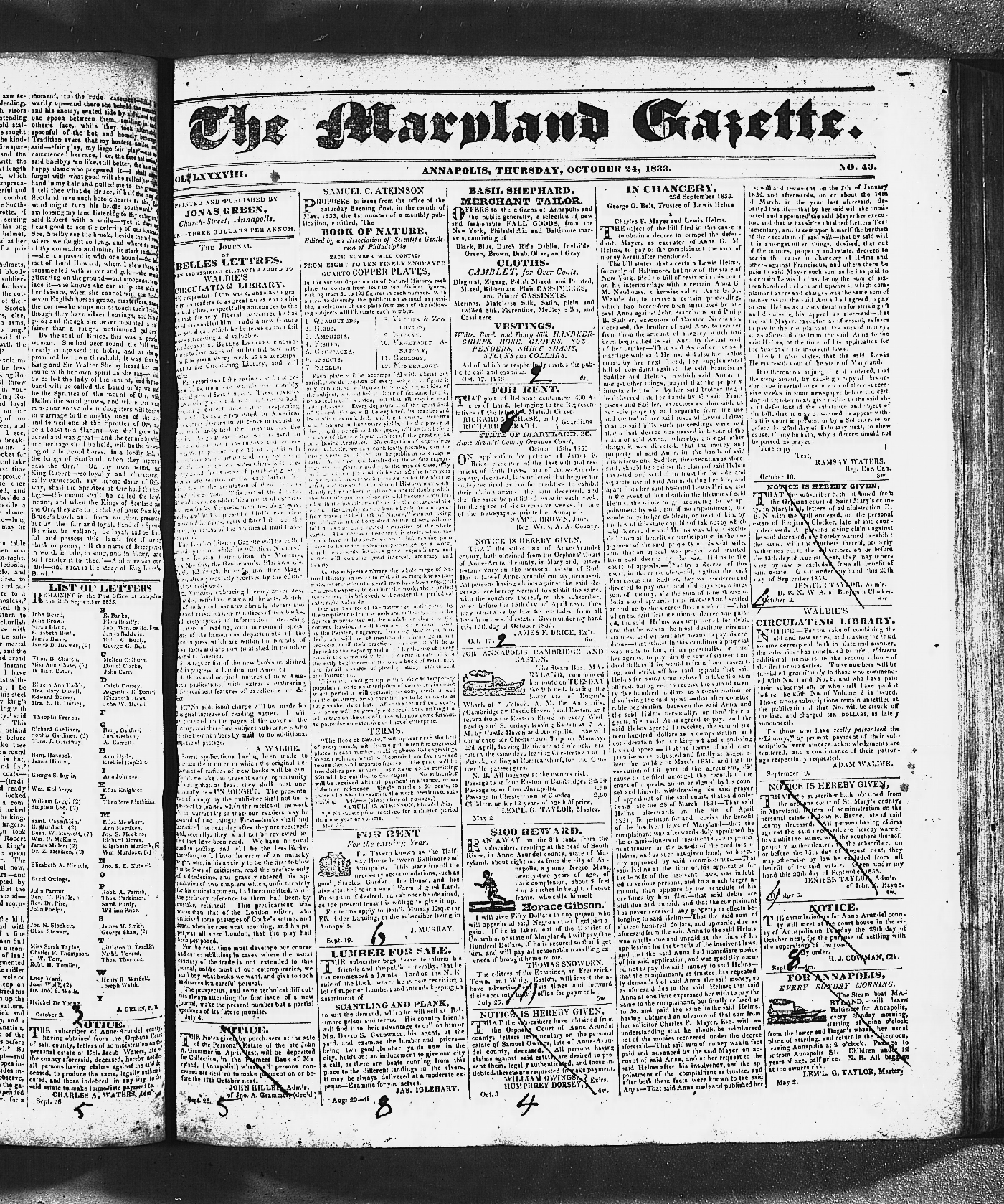 Maryland Gazette Collection MSA SC 3447 January 1, 1829 - December 31, 1835 M 1290 A Publication of the Archives of Maryland Online Image No: 1102 Enlarge and print image (5M) |
