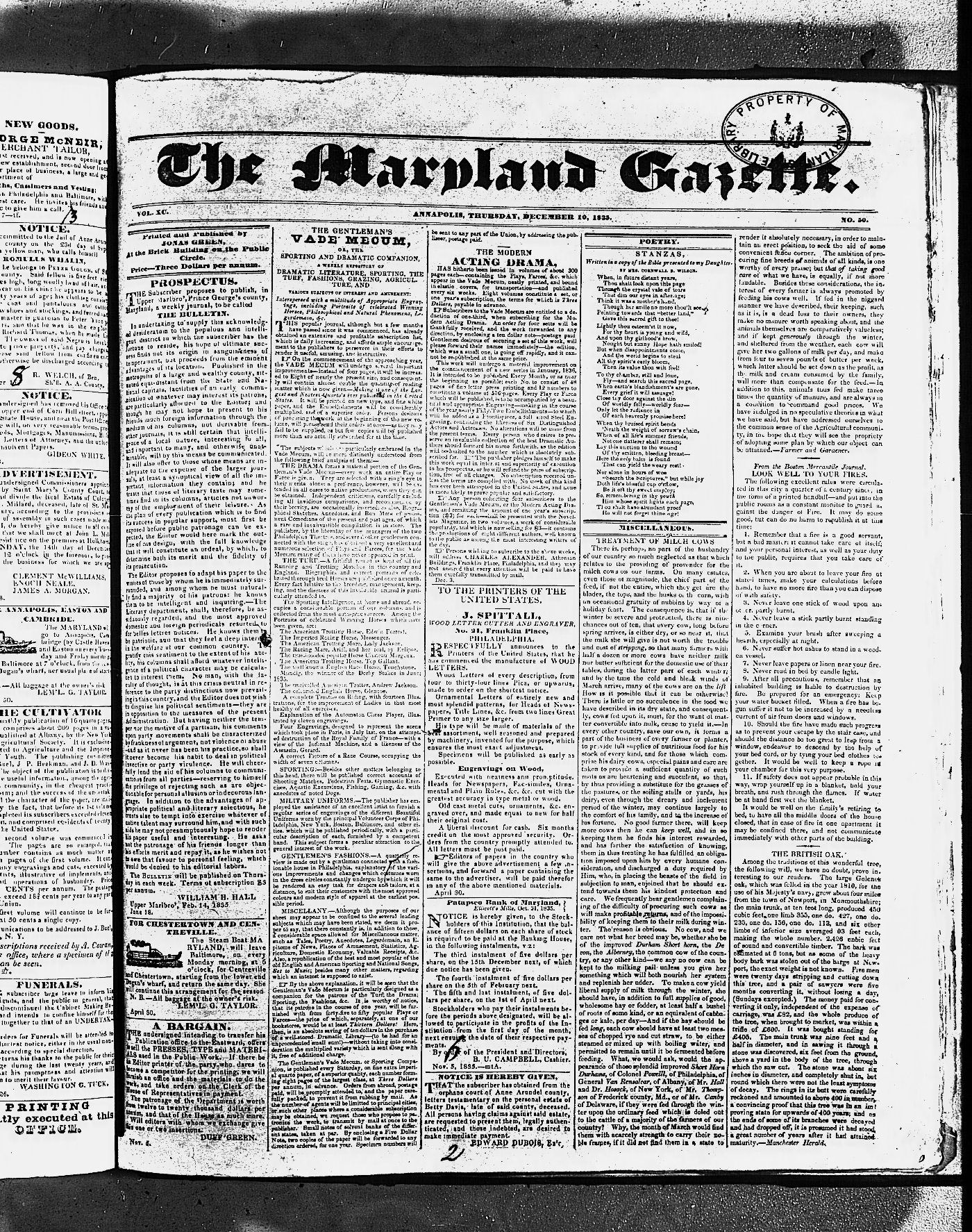 Maryland Gazette Collection MSA SC 3447 January 1, 1829 - December 31, 1835 M 1290 A Publication of the Archives of Maryland Online Image No: 1570 Enlarge and print image (6M) |