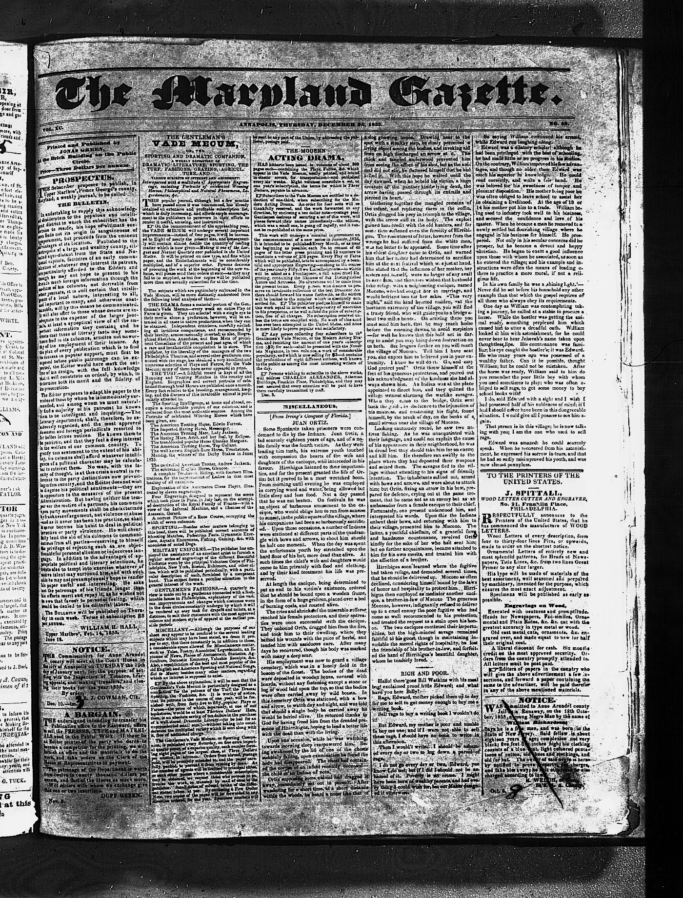 Maryland Gazette Collection MSA SC 3447 January 1, 1829 - December 31, 1835 M 1290 A Publication of the Archives of Maryland Online Image No: 1580 Enlarge and print image (6M) |