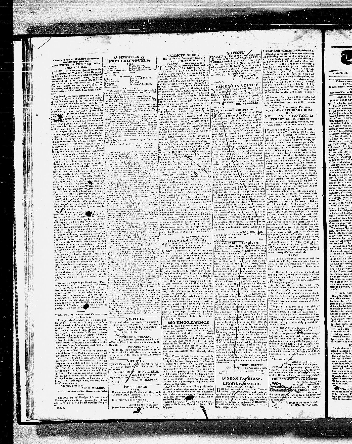 Maryland Gazette Collection MSA SC 3447 January 7, 1836 - December 18, 1839 M 1291 A Publication of the Archives of Maryland Online Image No: 147 Enlarge and print image (5M) |