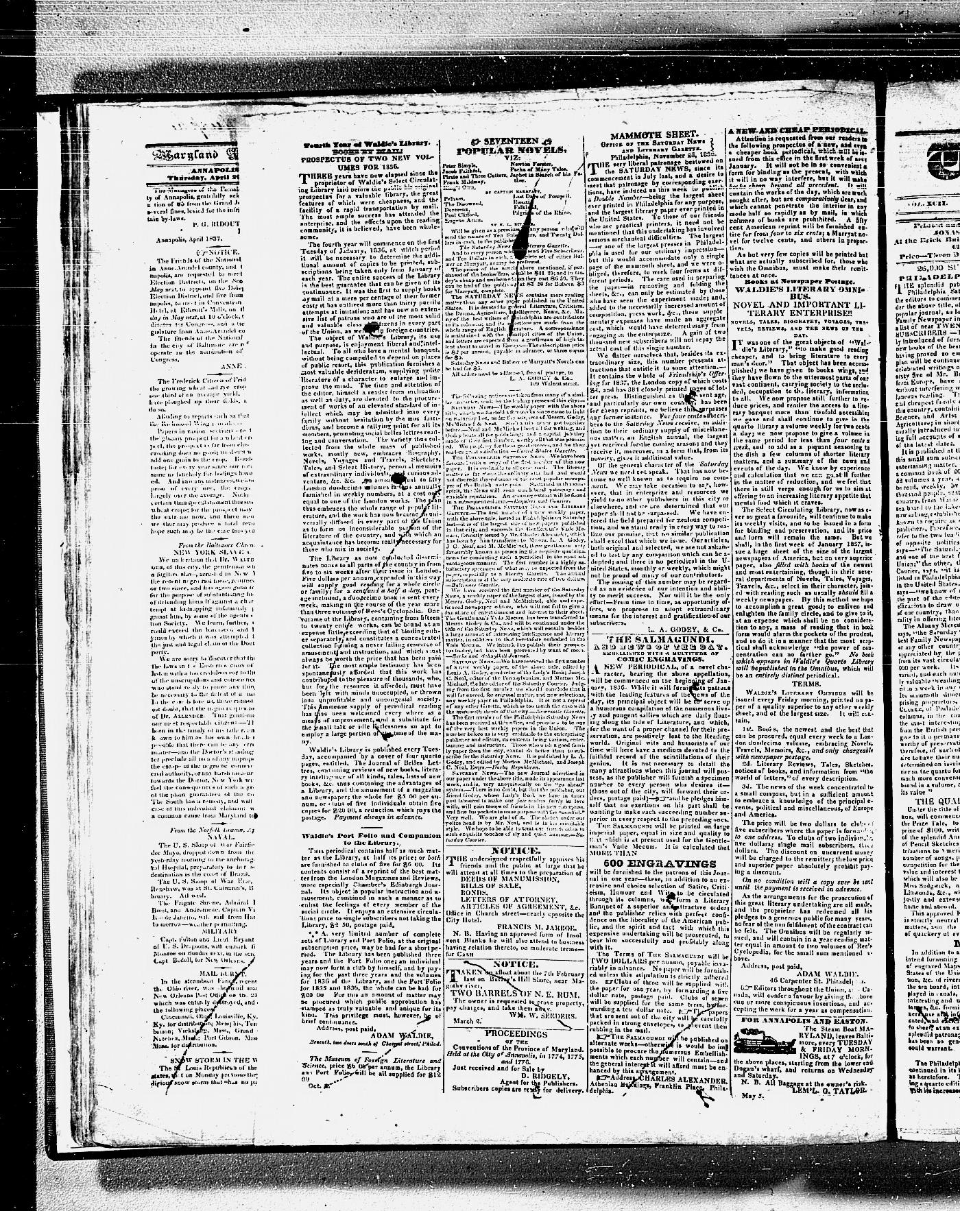 Maryland Gazette Collection MSA SC 3447 January 7, 1836 - December 18, 1839 M 1291 A Publication of the Archives of Maryland Online Image No: 151 Enlarge and print image (5M) |