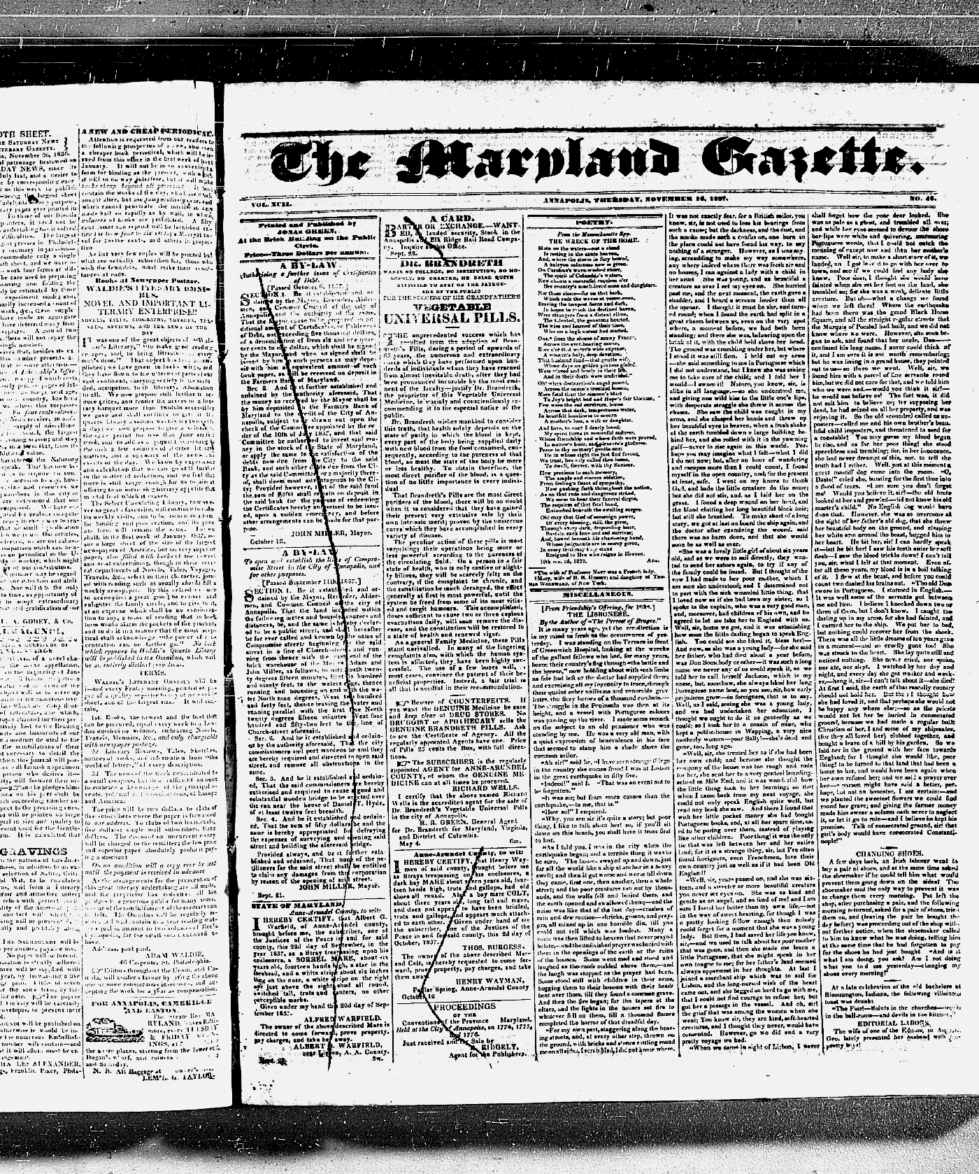 Maryland Gazette Collection MSA SC 3447 January 7, 1836 - December 18, 1839 M 1291 A Publication of the Archives of Maryland Online Image No: 270 Enlarge and print image (6M) |