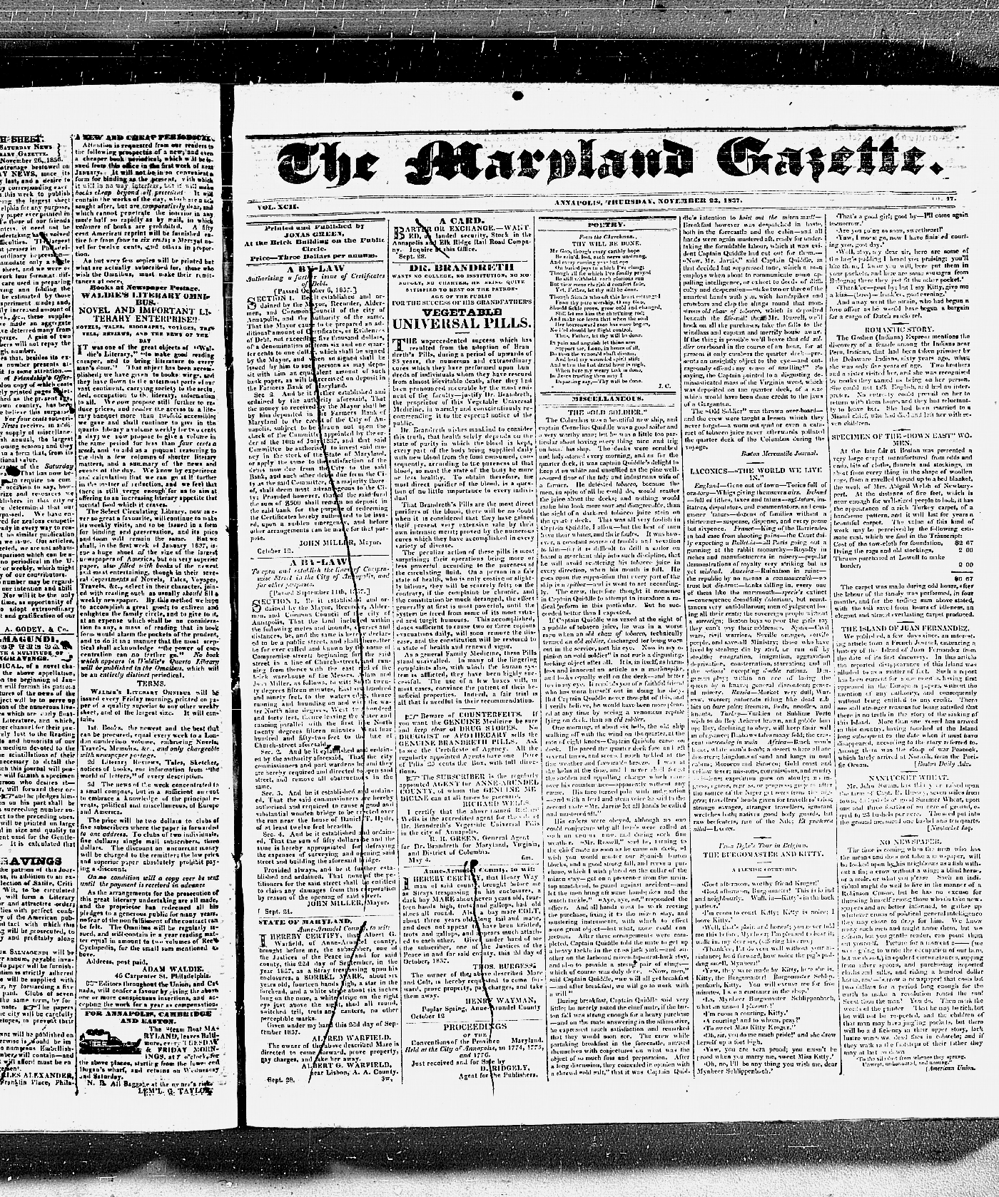 Maryland Gazette Collection MSA SC 3447 January 7, 1836 - December 18, 1839 M 1291 A Publication of the Archives of Maryland Online Image No: 274 Enlarge and print image (6M) |
