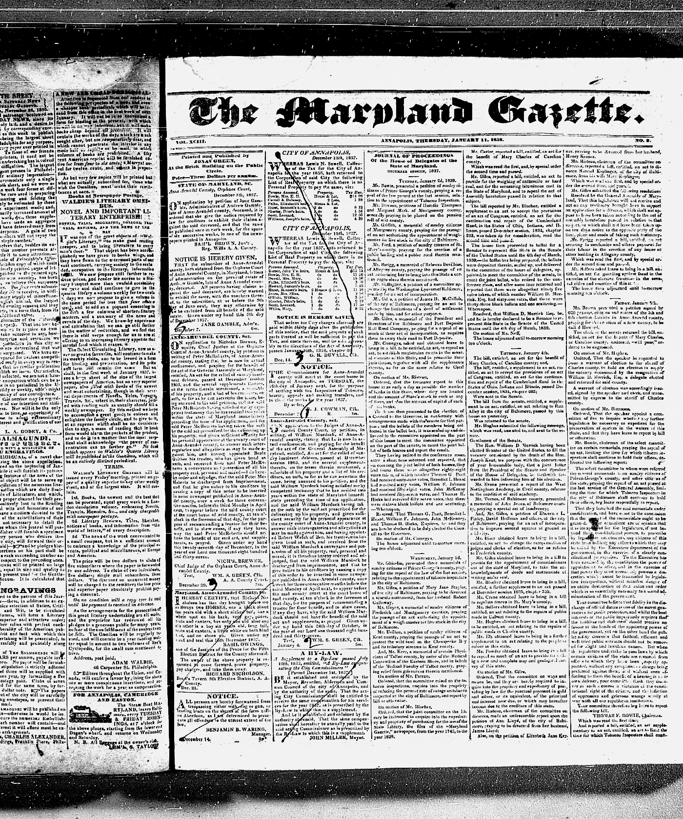 Maryland Gazette Collection MSA SC 3447 January 7, 1836 - December 18, 1839 M 1291 A Publication of the Archives of Maryland Online Image No: 308 Enlarge and print image (6M) |