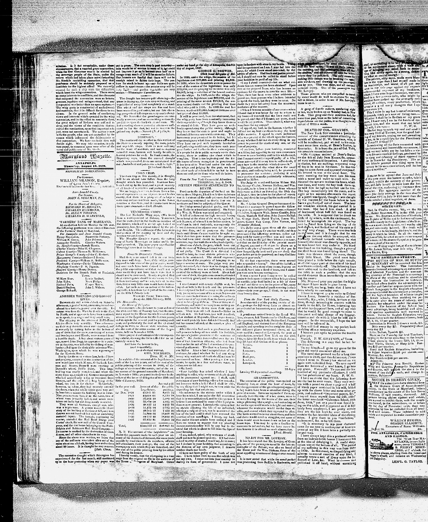 Maryland Gazette Collection MSA SC 3447 January 7, 1836 - December 18, 1839 M 1291 A Publication of the Archives of Maryland Online Image No: 437 Enlarge and print image (6M) |