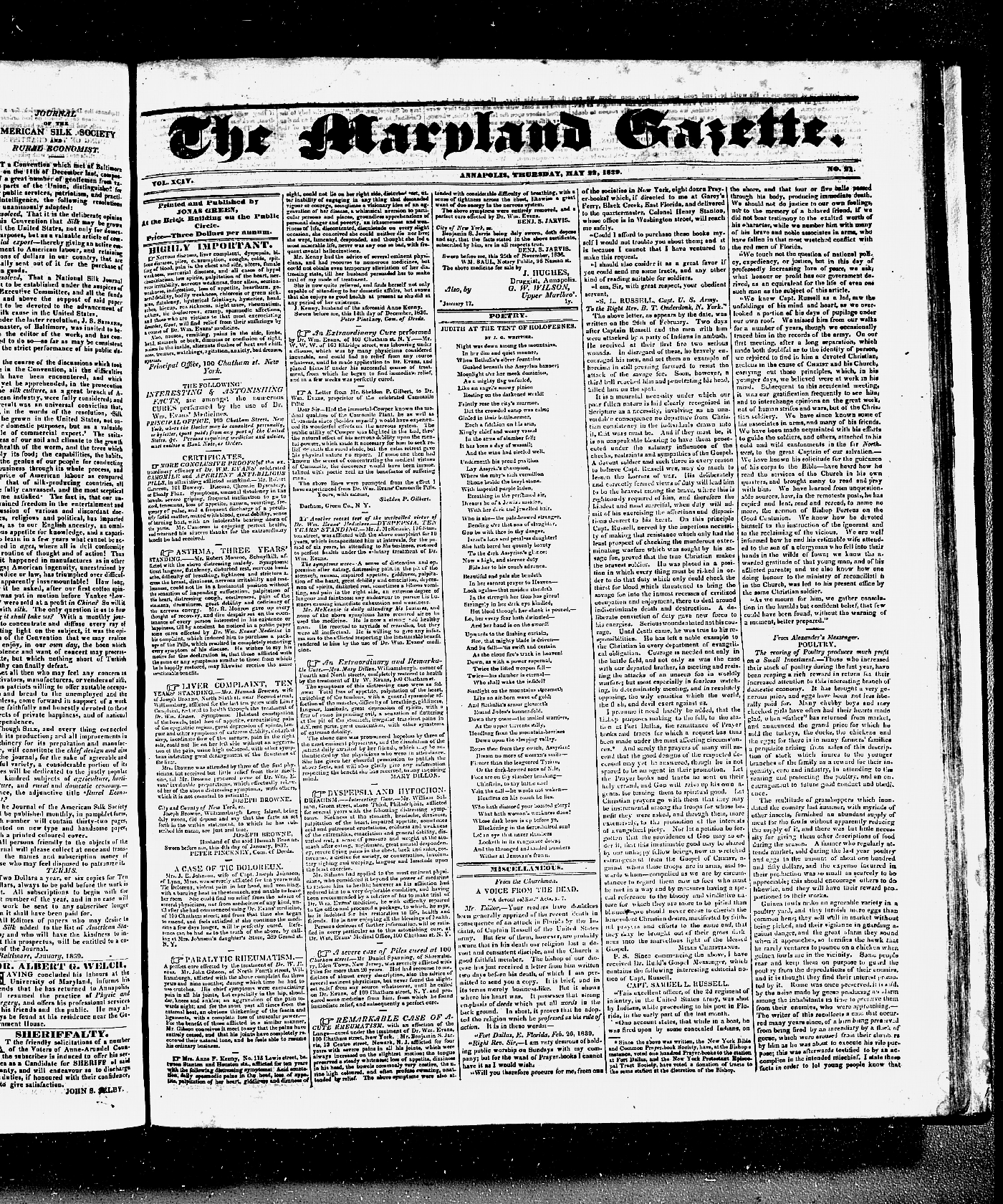 Maryland Gazette Collection MSA SC 3447 January 7, 1836 - December 18, 1839 M 1291 A Publication of the Archives of Maryland Online Image No: 596 Enlarge and print image (6M) |