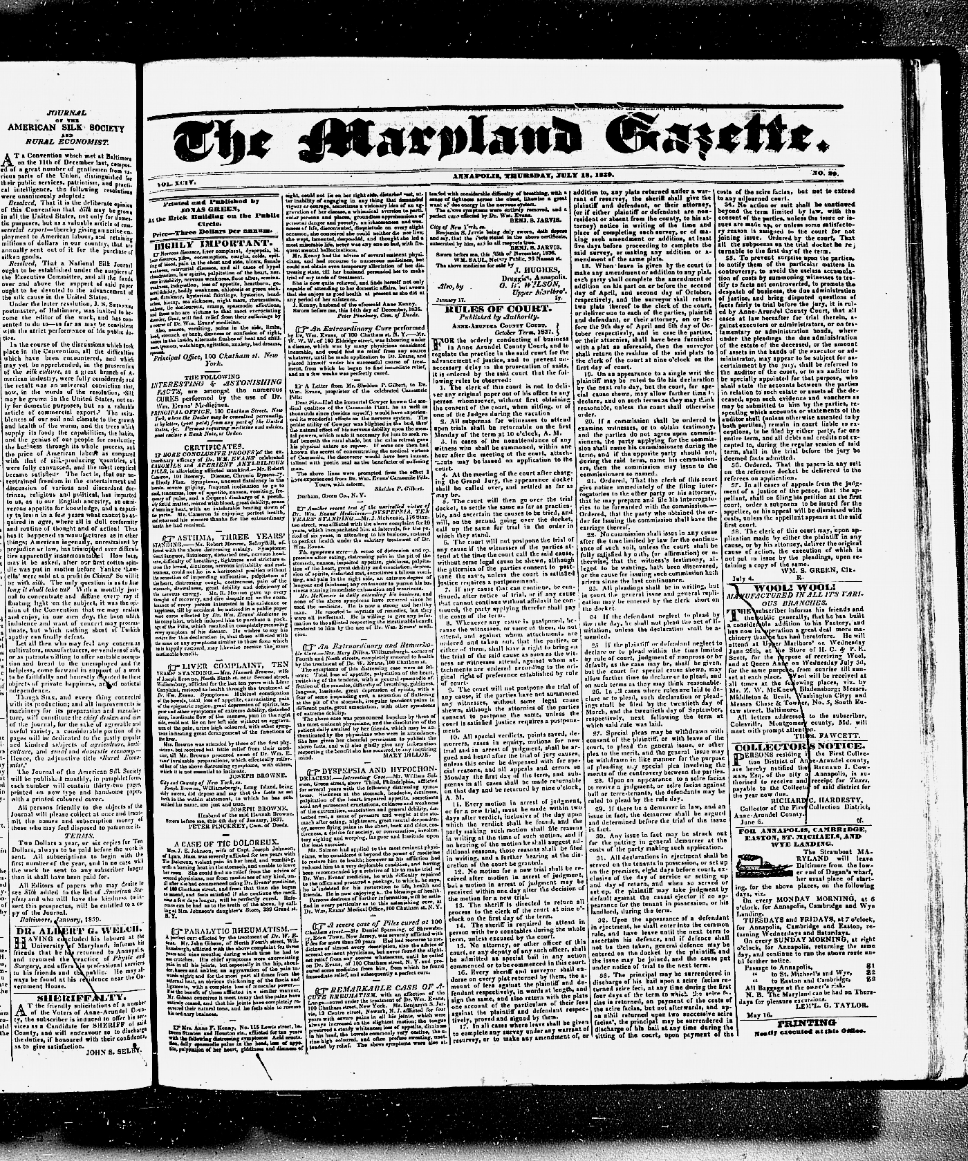 Maryland Gazette Collection MSA SC 3447 January 7, 1836 - December 18, 1839 M 1291 A Publication of the Archives of Maryland Online Image No: 632 Enlarge and print image (6M) |