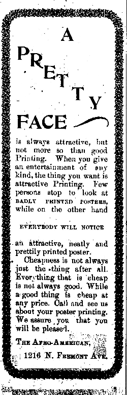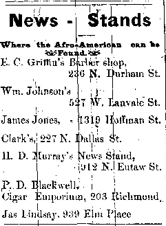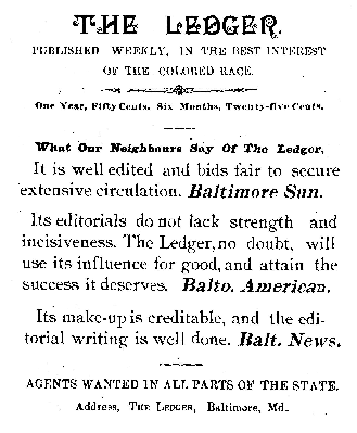 The editor of the Ledger was confident in the importance of his newspaper: the Ledger consistently ran advertisements affirming their role in the African American community.  The editors of the Afro- American, the Ledger, and  later Afro-American Ledger (now the Afro-American) also knew that their pages were great venues for advertisement.  All of these papers encouraged local businesses to place advertisements to ensure that their products received proper exposure in a respectable newspaper. In every  issue of the Afro-American, one could find all of the locations where the newspaper could be purchased.  The newspaper was in demand and the publisher made sure that everyone interested knew where they could pick up the next issue.