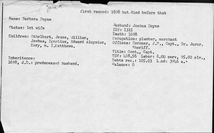 Dr. Lois Green Carr Men's Career Files MSA SC 5094 Image No: sc5094-1189-15 Enlarge and print image (2M) << PREVIOUS NEXT >> |