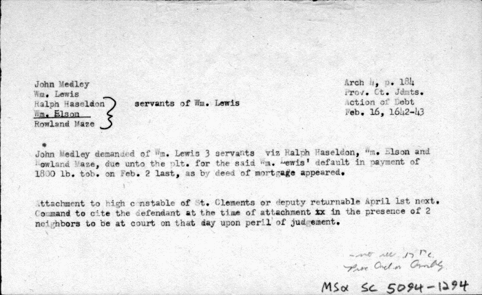 Dr. Lois Green Carr Men's Career Files MSA SC 5094 Image No: sc5094-1294 Enlarge and print image (2M) << PREVIOUS NEXT >> |