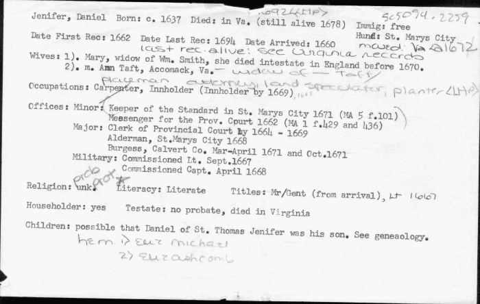 Dr. Lois Green Carr Men's Career Files MSA SC 5094 Image No: sc5094-2259-001 Enlarge and print image (2M) << PREVIOUS NEXT >> |