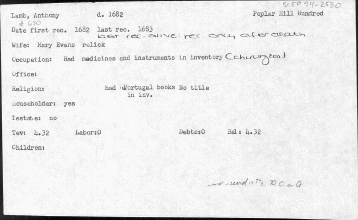 Dr. Lois Green Carr Men's Career Files MSA SC 5094 Image No: sc5094-2530-1 Enlarge and print image (2M) << PREVIOUS NEXT >> |