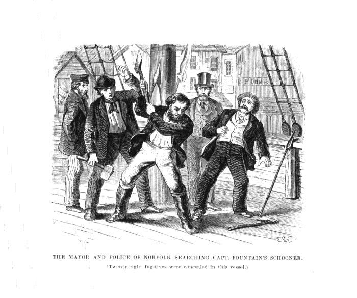 THK MAYOIt AND POMCK OF NORFOLK SEARCHING CAPT. FOUNTAIN'S SCHOONER, (Twoiity-piKlit fugitivrs wnrfi coticoalcd in this vosscl.)