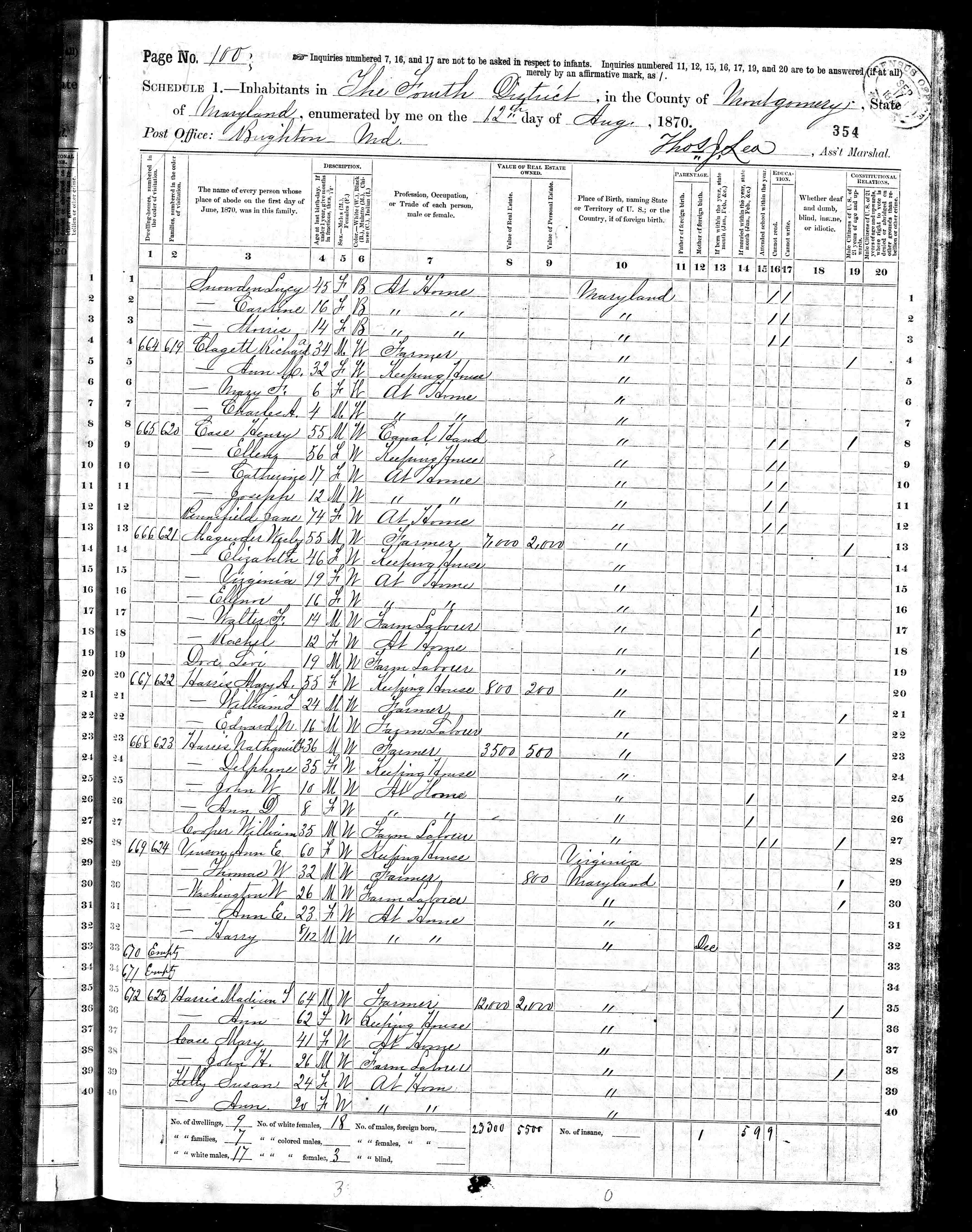 11. U.S. Census Bureau (Census Record, MD) for William B. Vinson, Slaves, 1850, Montgomery County, Medleys District, Page 22, Line 33 [MSA SM61-168, M 1505-5].