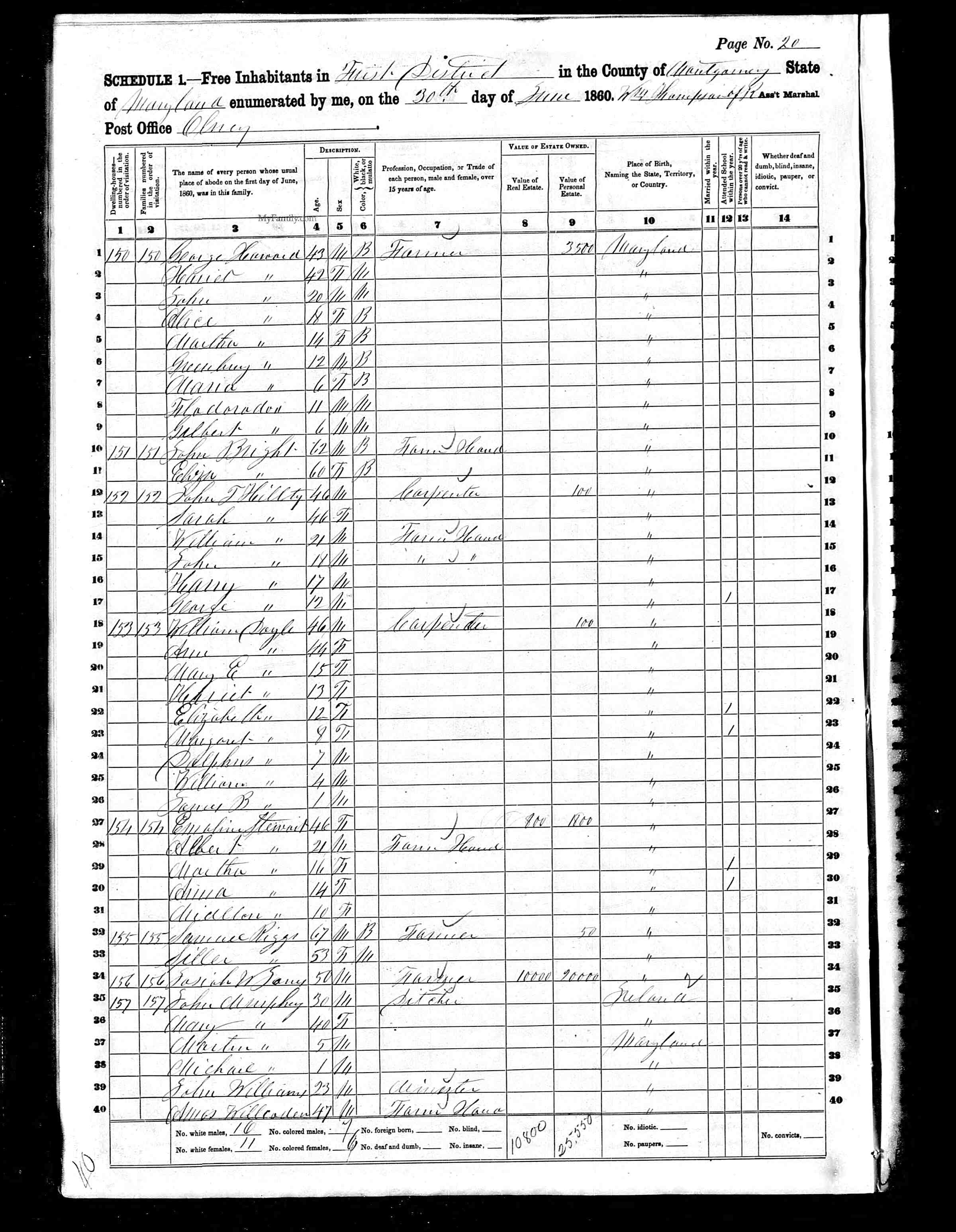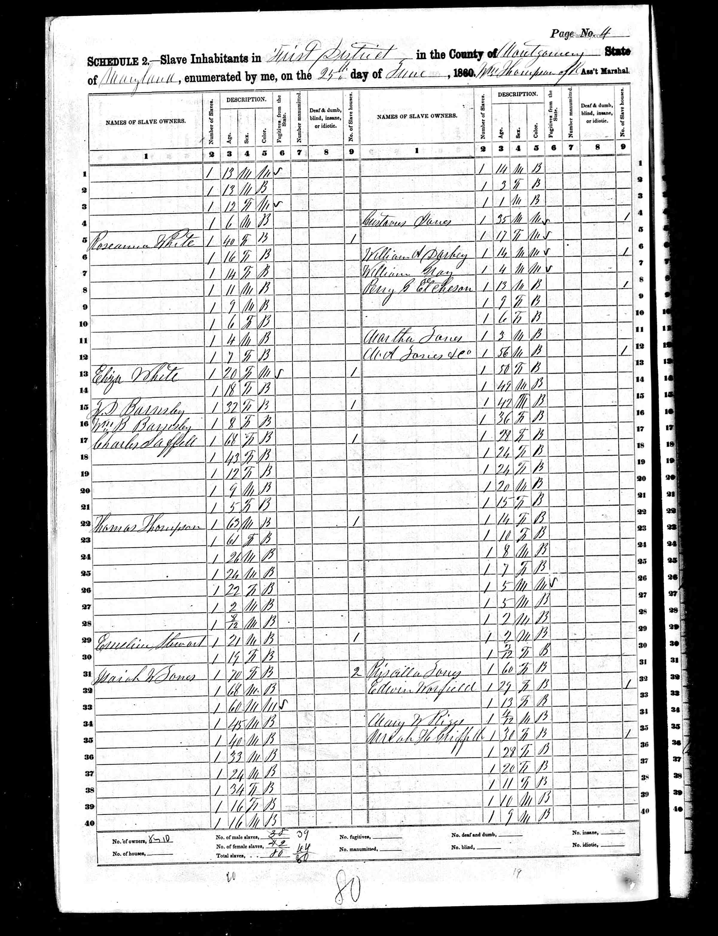 MONTGOMERY COUNTY, BOARD OF COUNTY COMMISSIONERS, (Assessment Record, Slaves), 1853-1864, [MSA C1112-1]. Josiah W. Jones, 1st Election District.